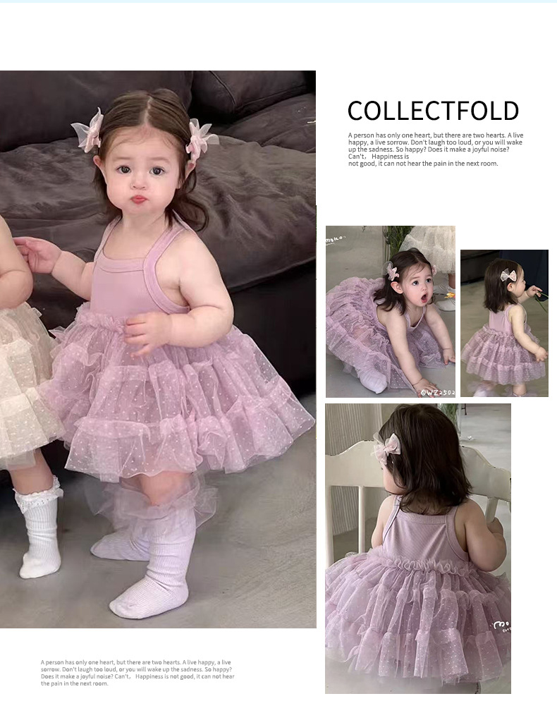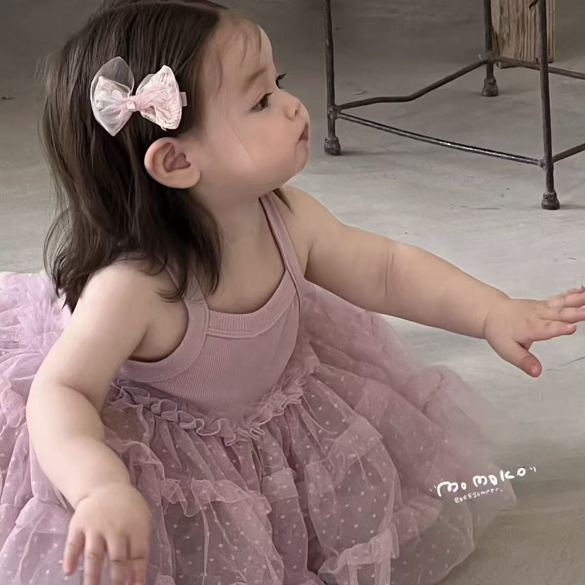 여자 여름 서스펜더 스커트, 달콤한 유치원 아기 푹신한 공주 거즈 스커트, 세련된 어린이 한 살짜리 선물 드레스