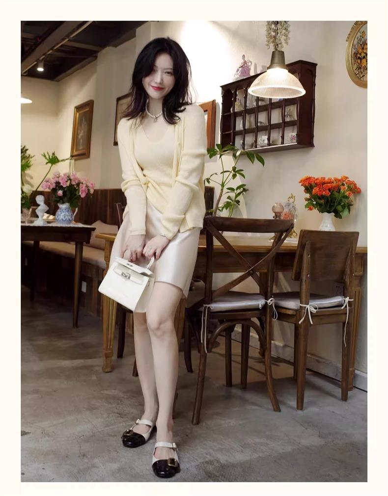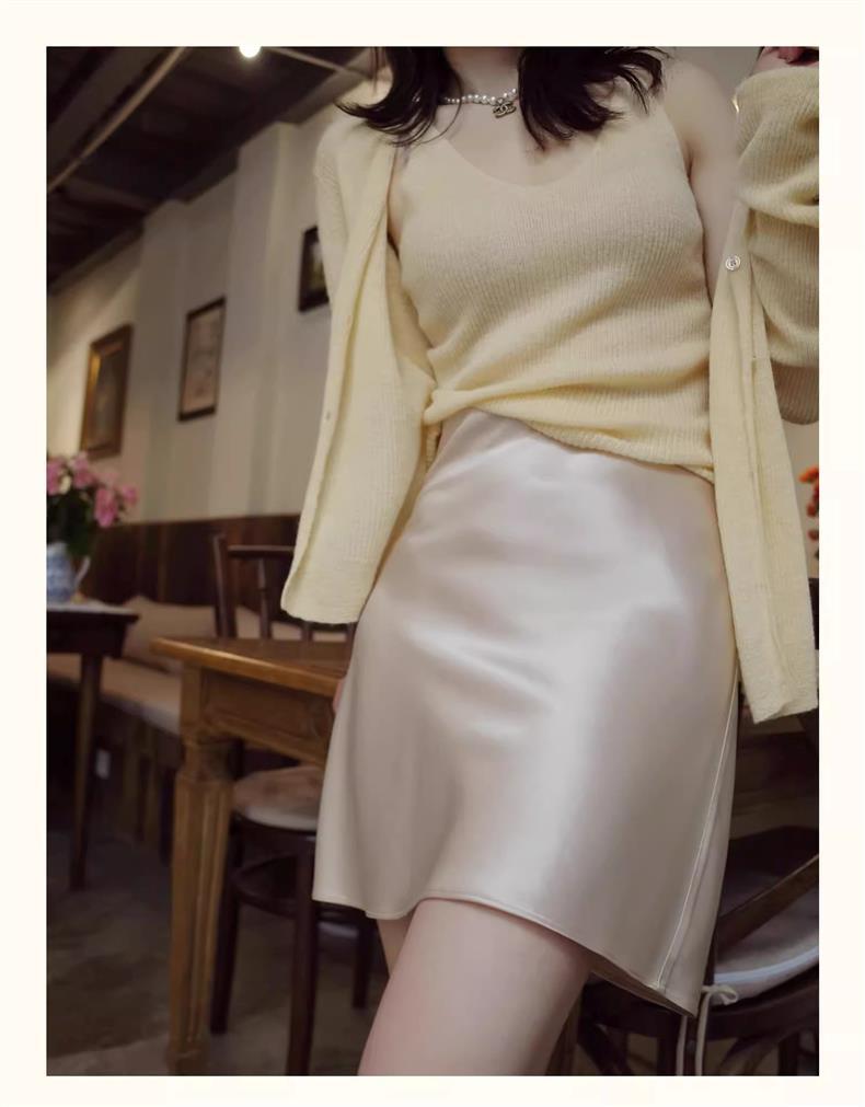 여름 여성을 위한 디자인 니치 A라인 드레이프 새틴 하이웨이스트 새틴 스커트, 고급스럽고 시크하며 아름다운 스커트스토어 가기