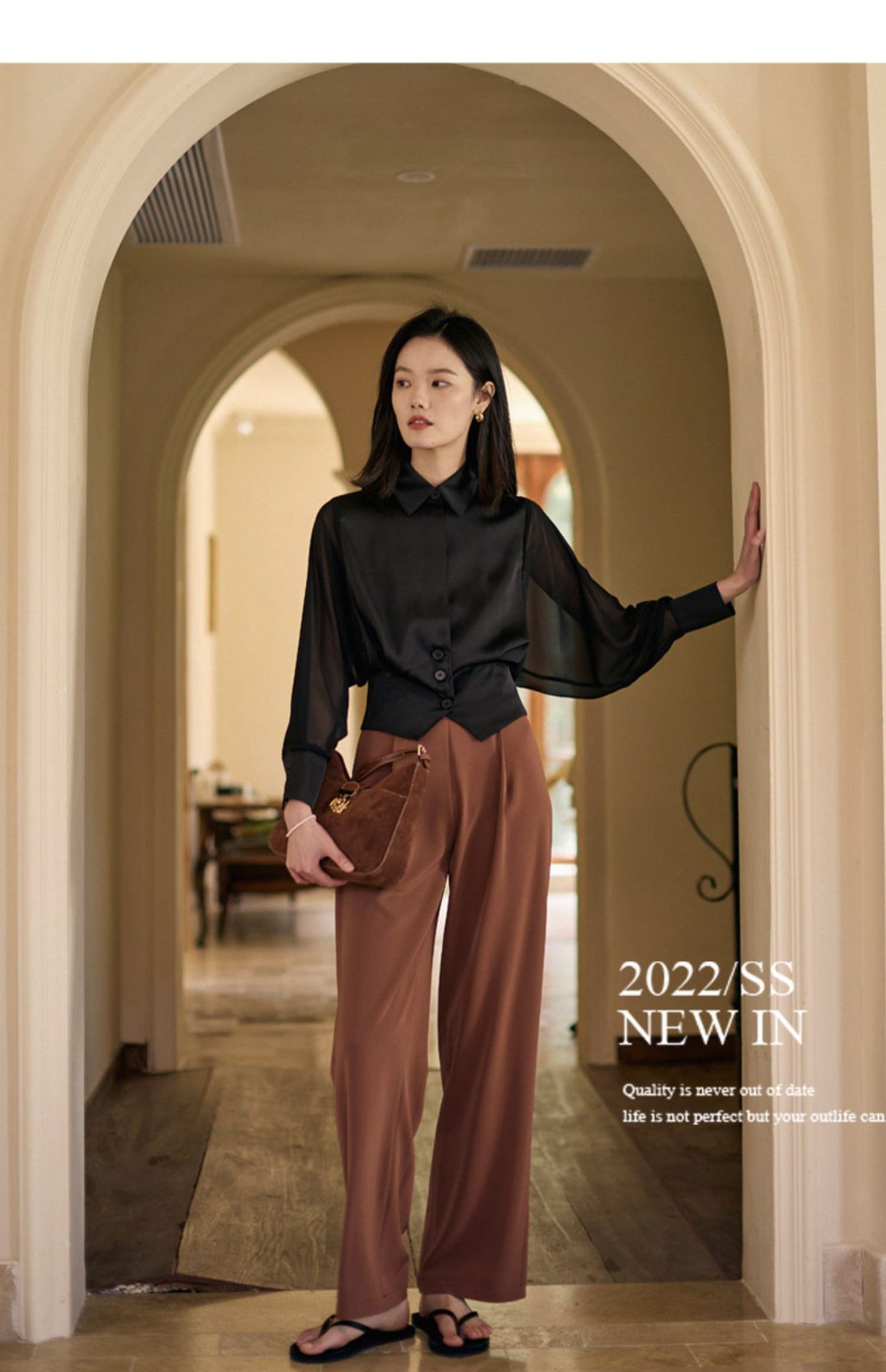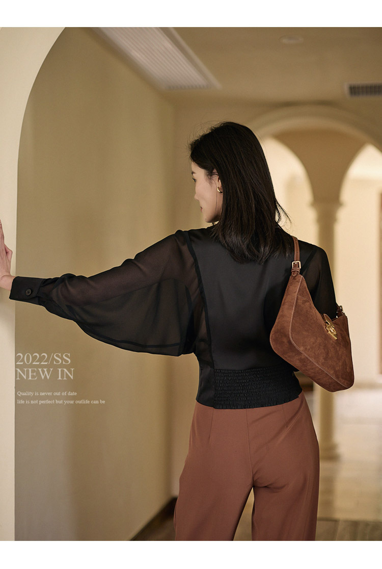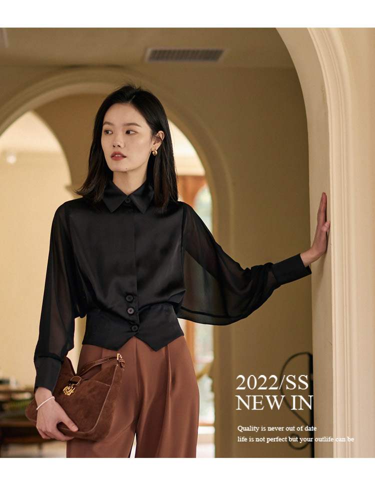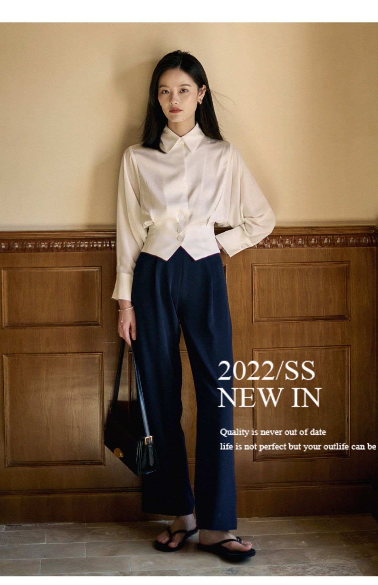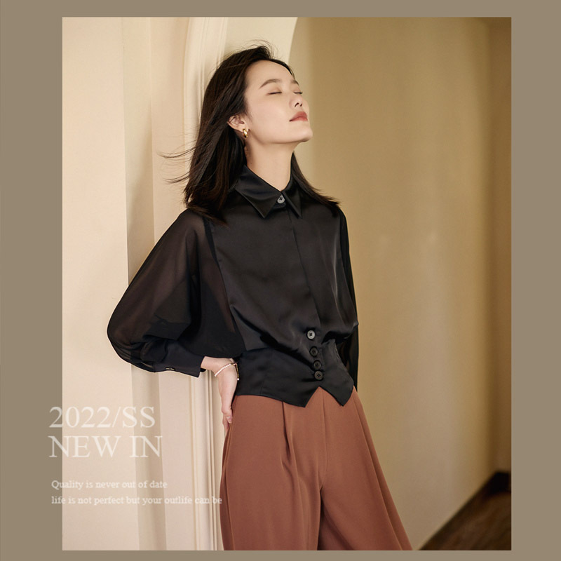 얇고 가벼운 여성용 셔츠, 한국식 디자인, 배트 슬리브, 틈새 라펠 셔츠, 루즈한 허리 슬리밍 셔츠