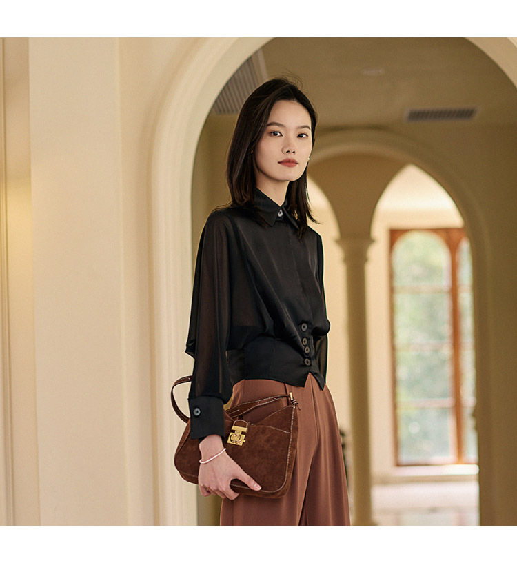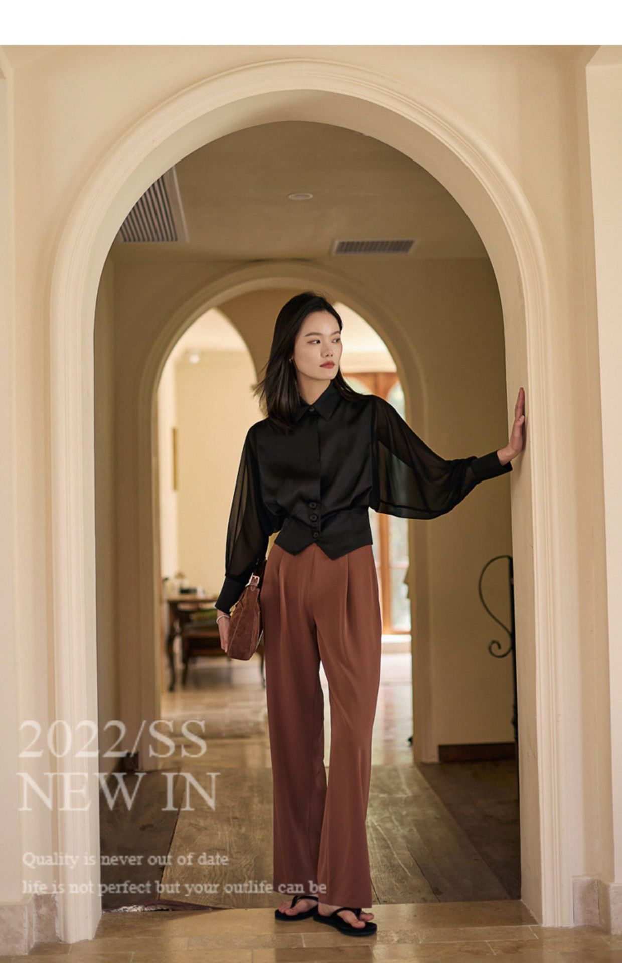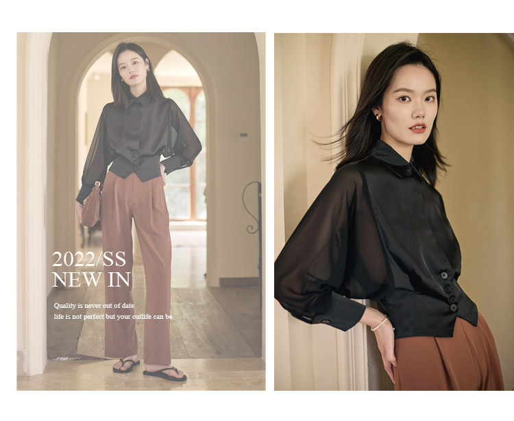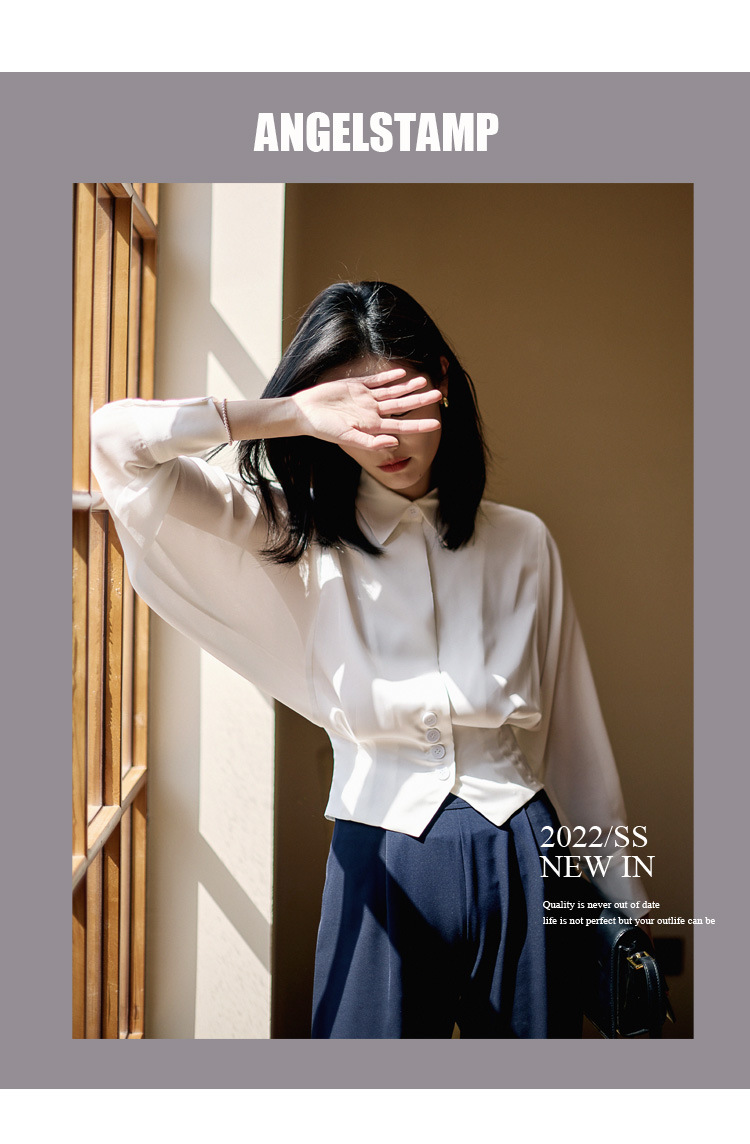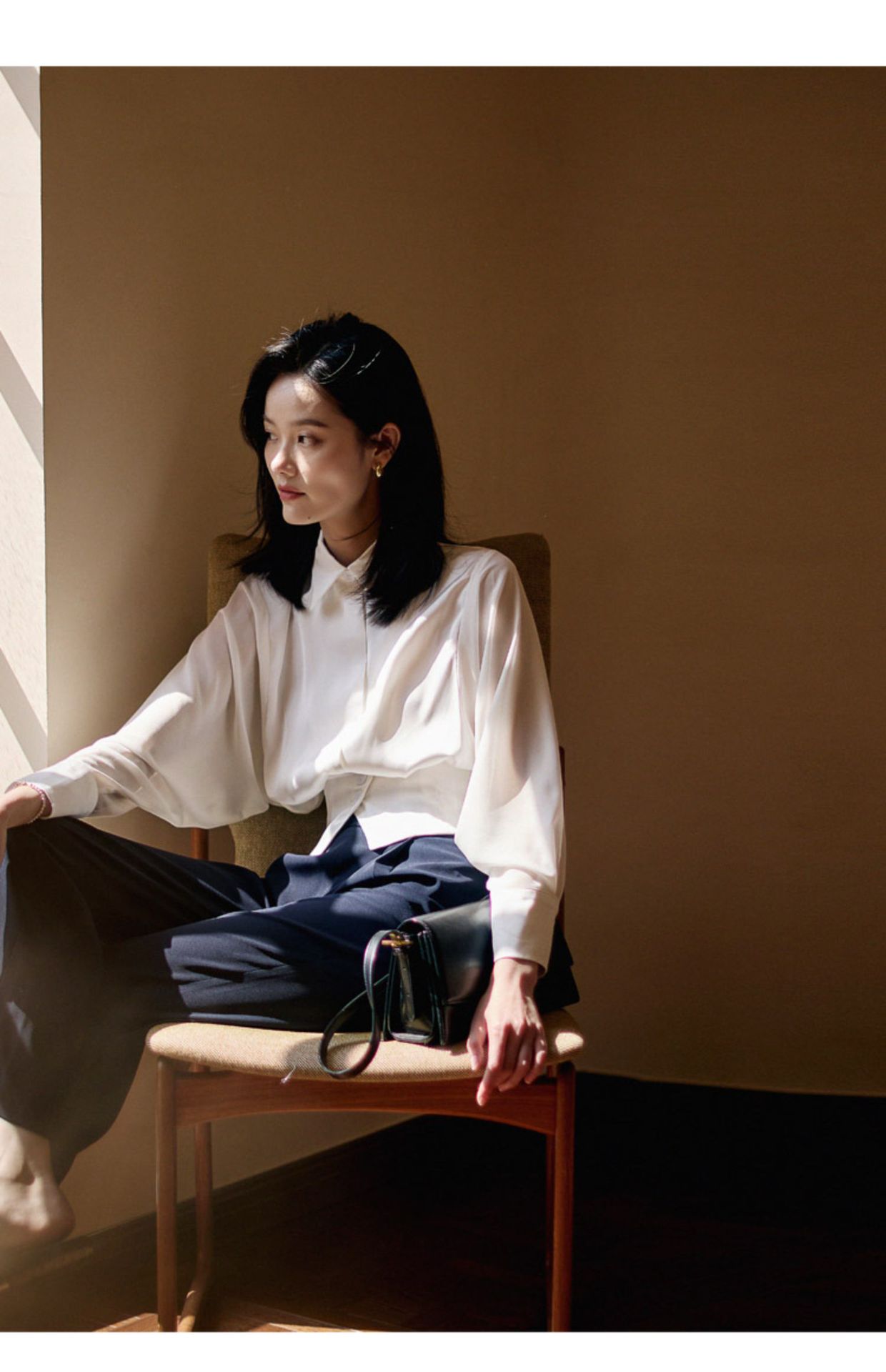 얇고 가벼운 여성용 셔츠, 한국식 디자인, 배트 슬리브, 틈새 라펠 셔츠, 루즈한 허리 슬리밍 셔츠스토어 가기