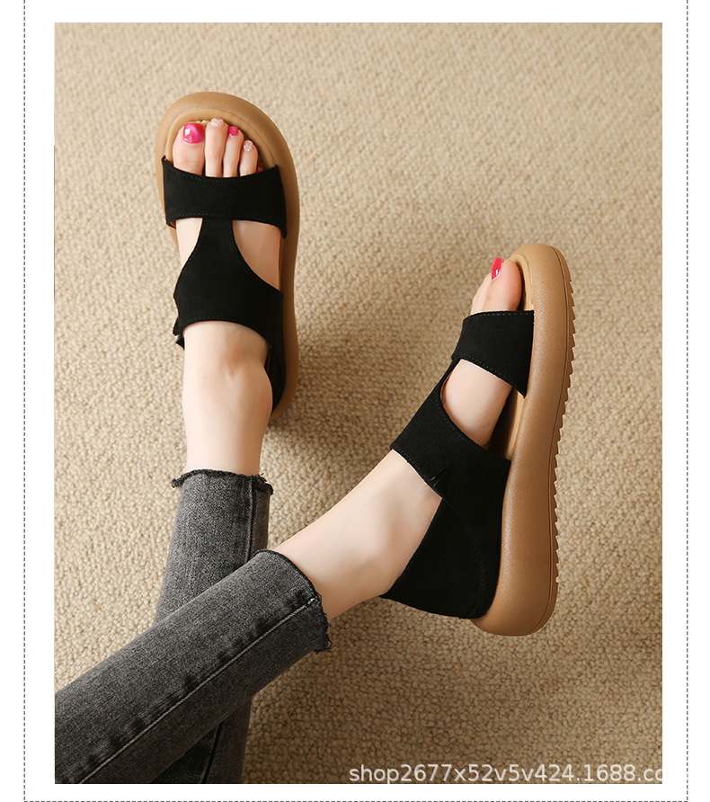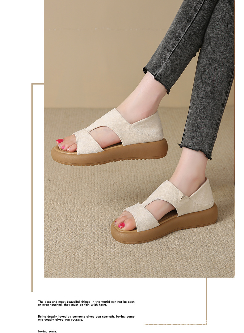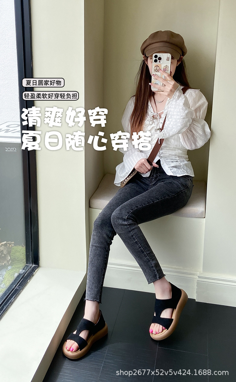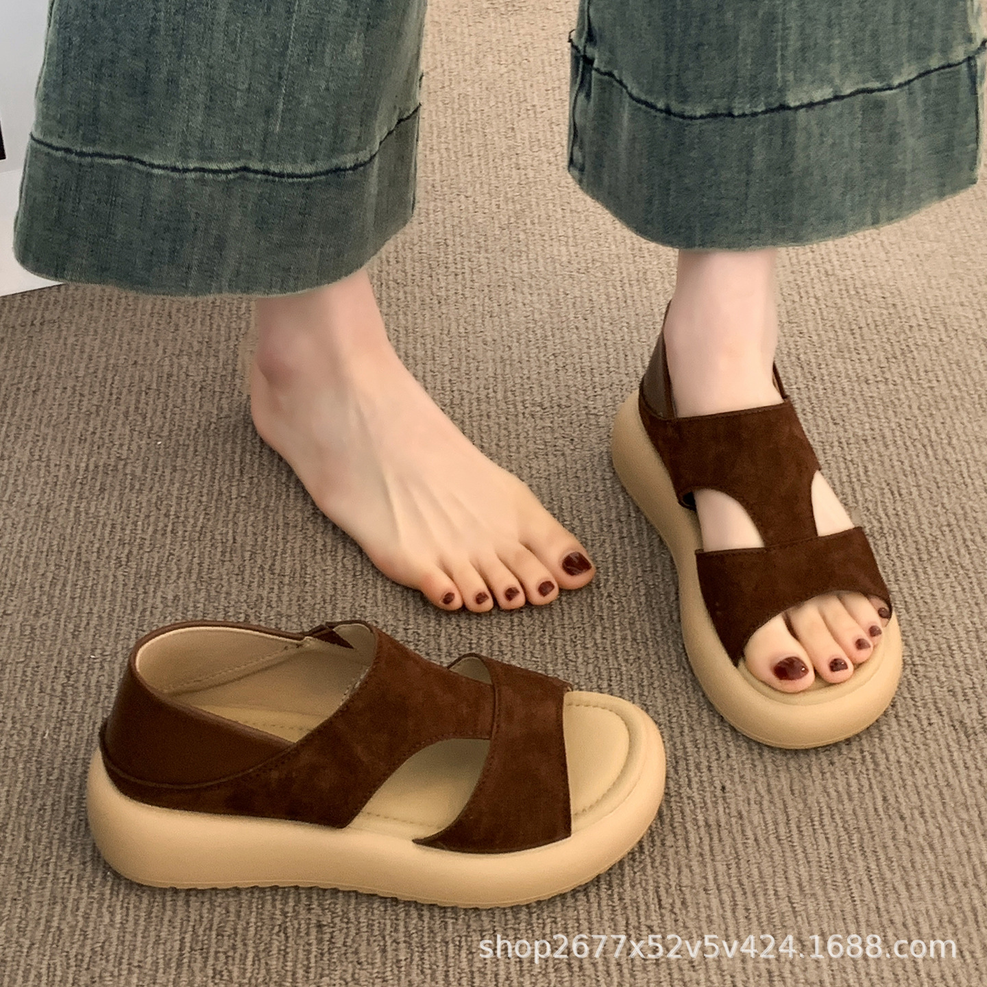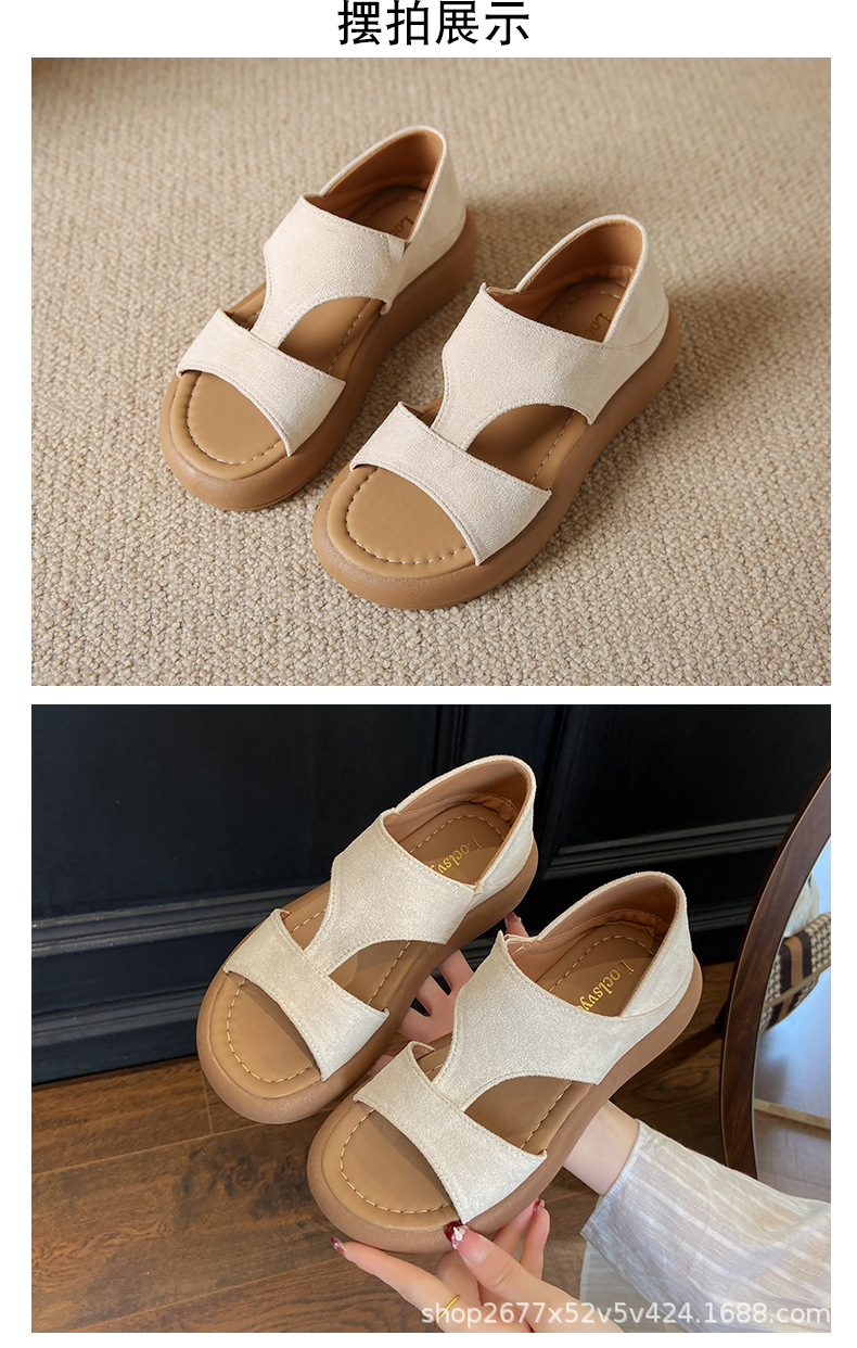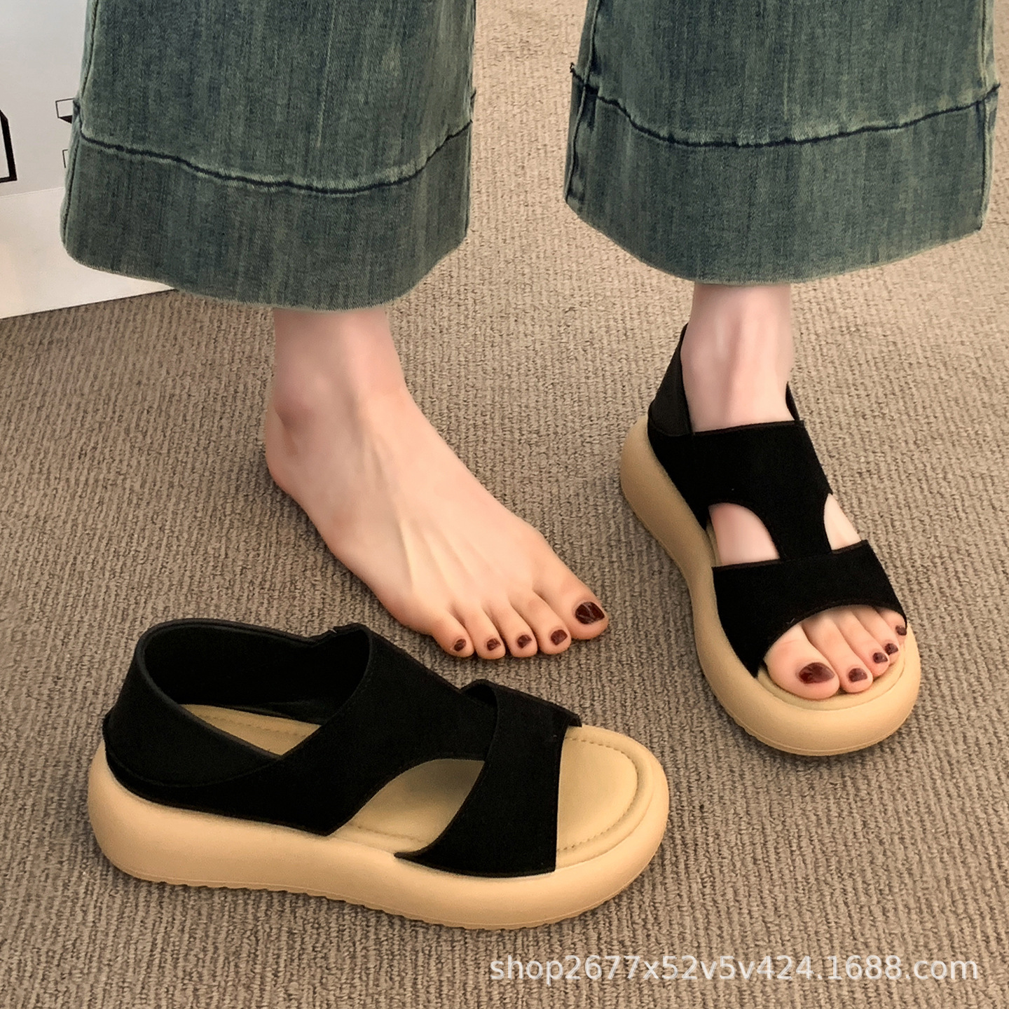 여성용 두꺼운 밑창 로마 샌들 2025 스커트와 함께 신는 새로운 여름 아우터웨어 부드러운 밑창 슬리퍼 임산부를위한 두 번 착용 가능스토어 가기