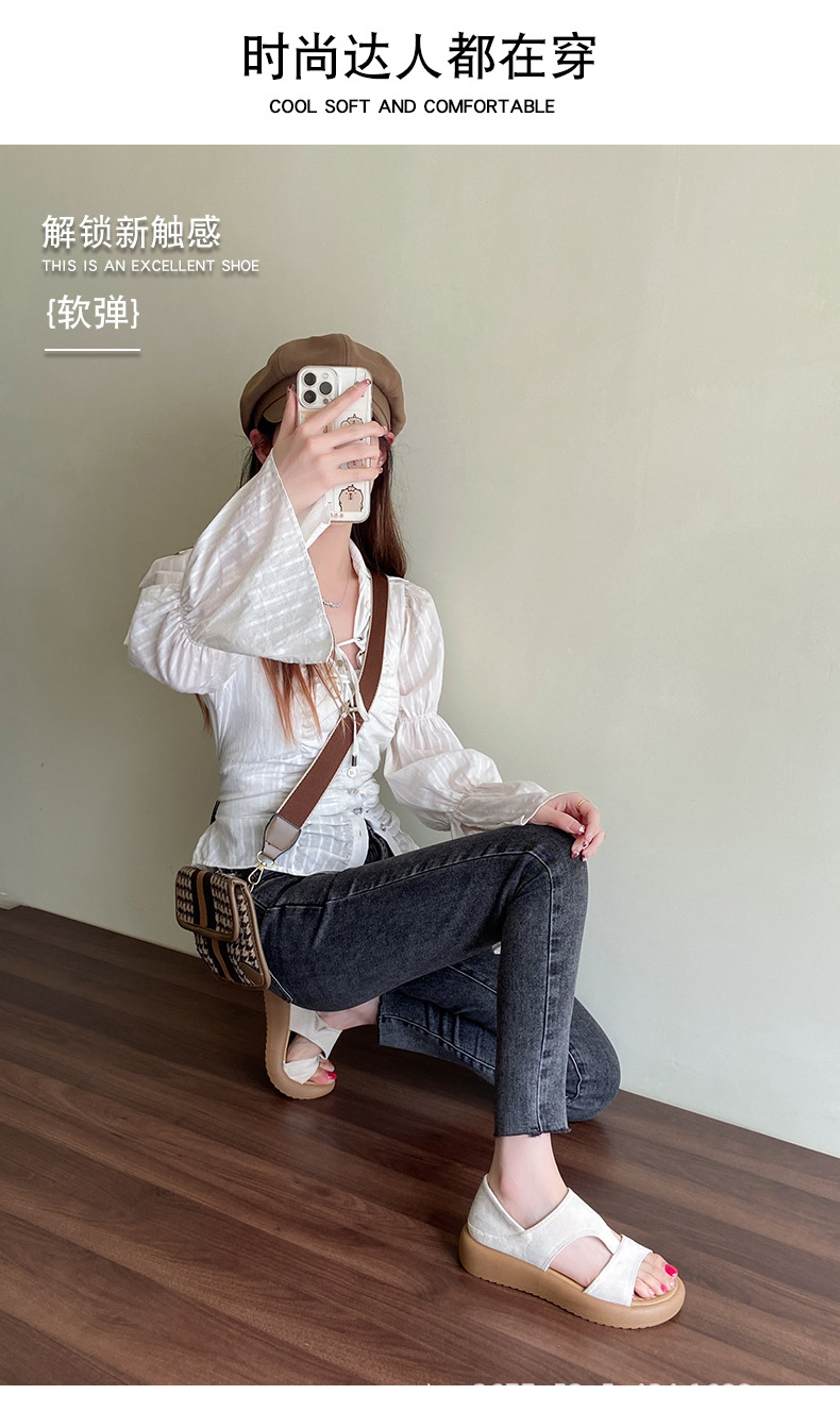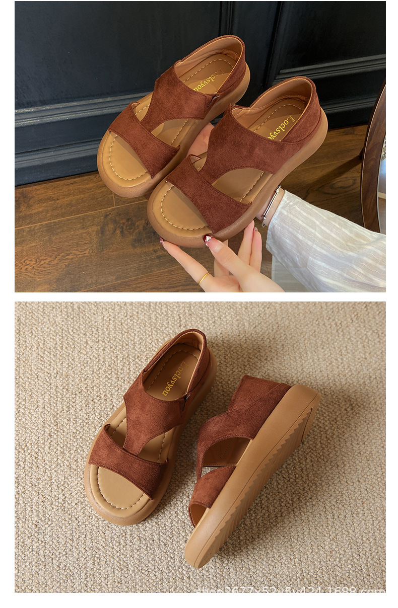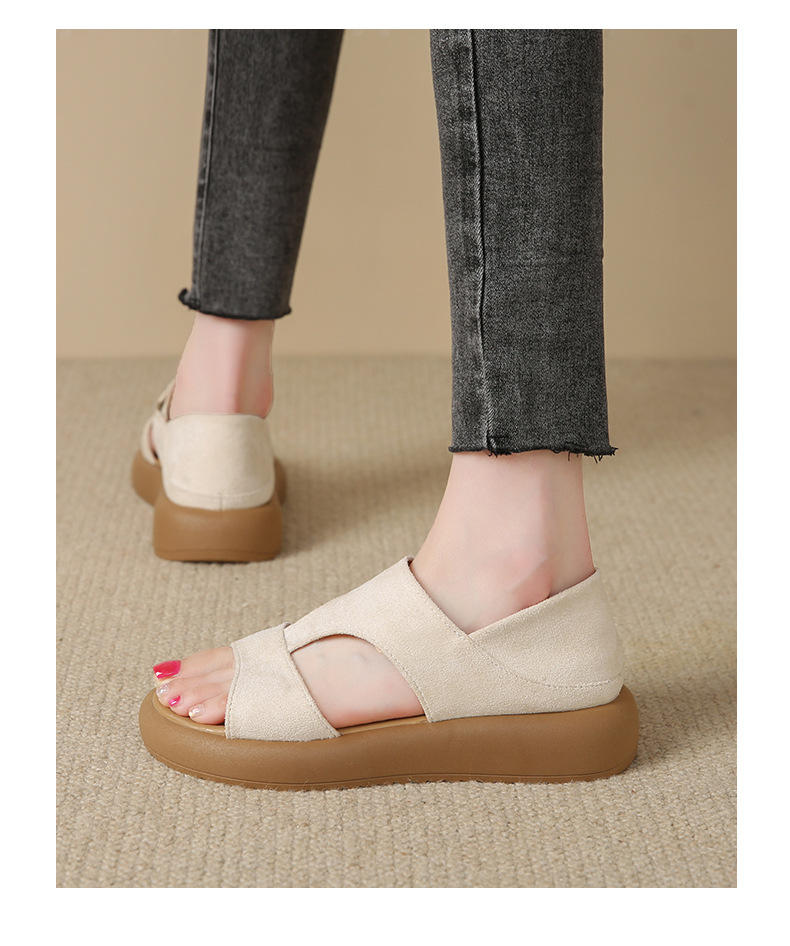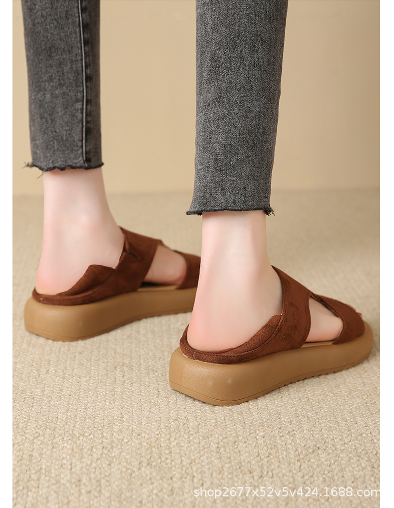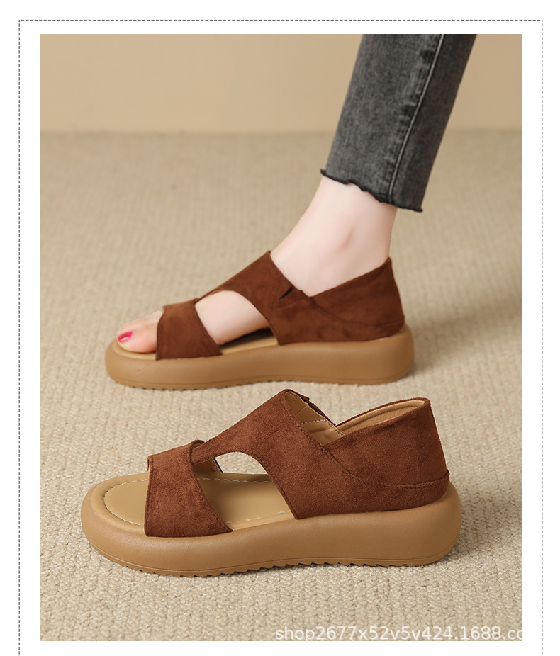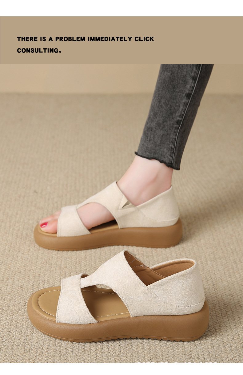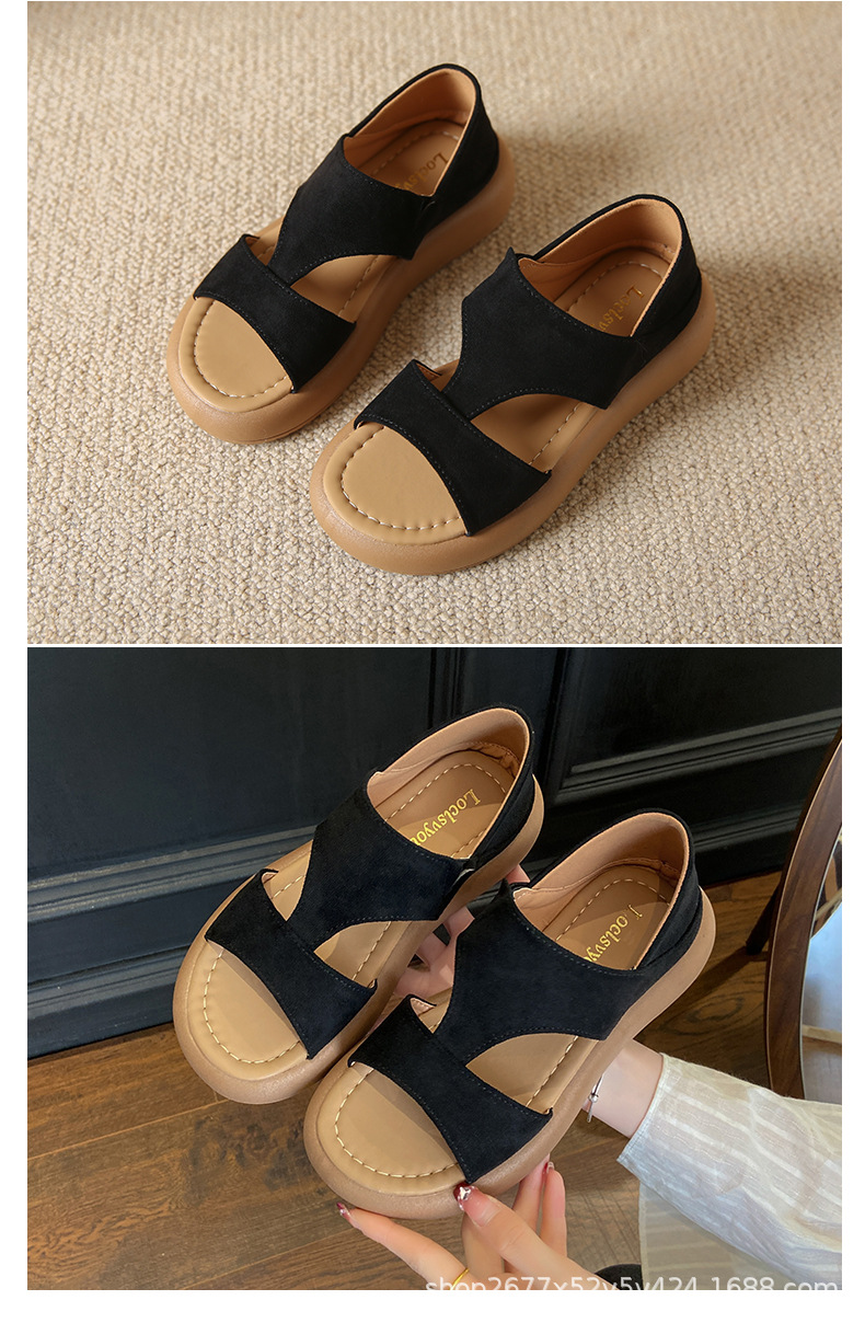 여성용 두꺼운 밑창 로마 샌들 2025 스커트와 함께 신는 새로운 여름 아우터웨어 부드러운 밑창 슬리퍼 임산부를위한 두 번 착용 가능스토어 가기