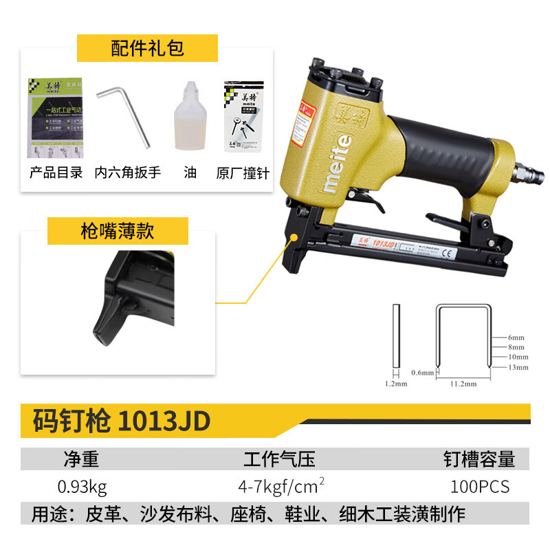 Meite 1013J 공압 코드 네일 건 목공 장식 코드 네일 건 목재 프레임 말 네일 건 공압 U 자형