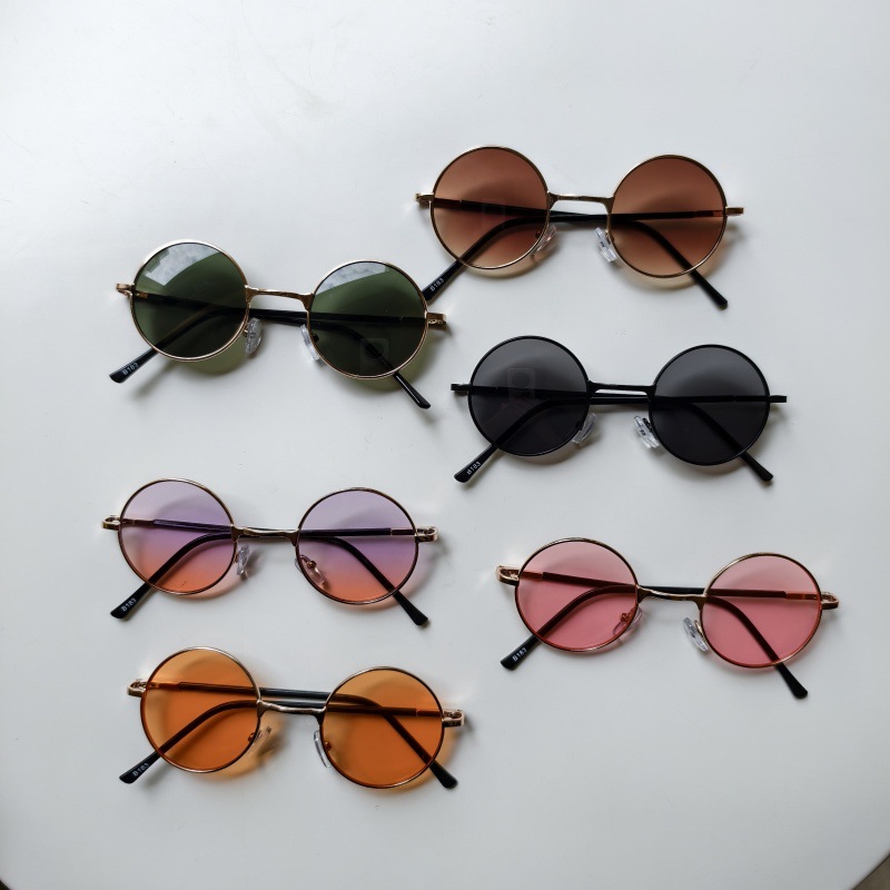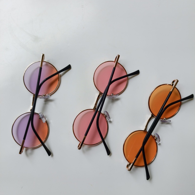 어린이용 원형 프레임 안경, 복고풍 금속 힙합 선글라스, 소년 소녀 패션 착용, 오목한 모양의 자외선 차단 선글라스, 트렌디함
