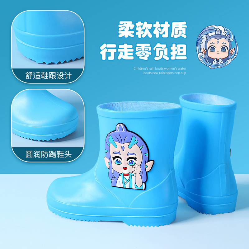 어린이 장화, 소년 소녀, 아기 장화, 미끄럼 방지 및 방수, 유아 만화, 벨벳 커프가 있는 학생용 워터 슈즈스토어 가기