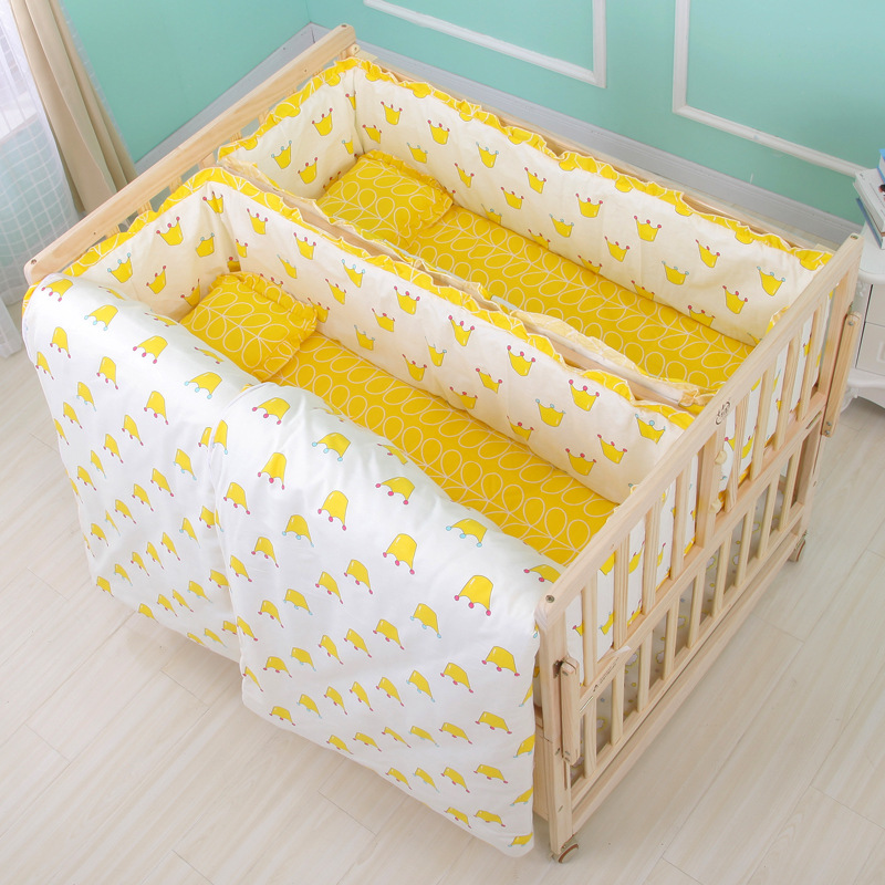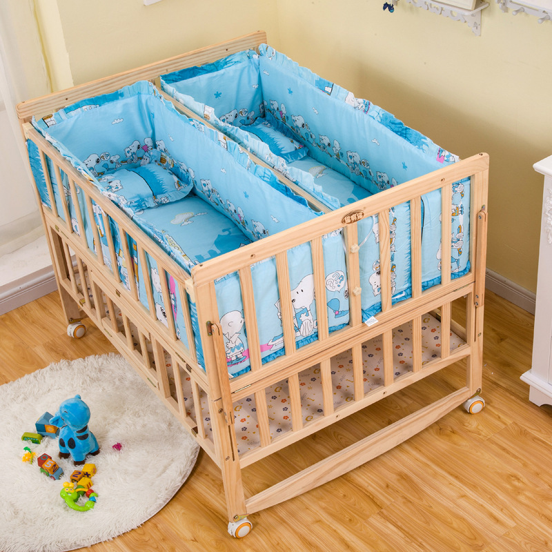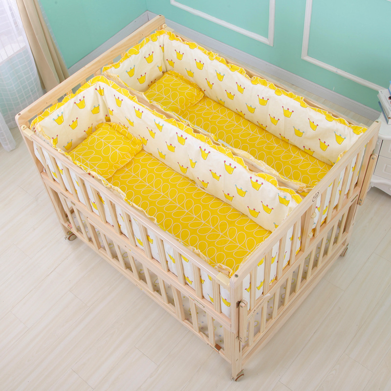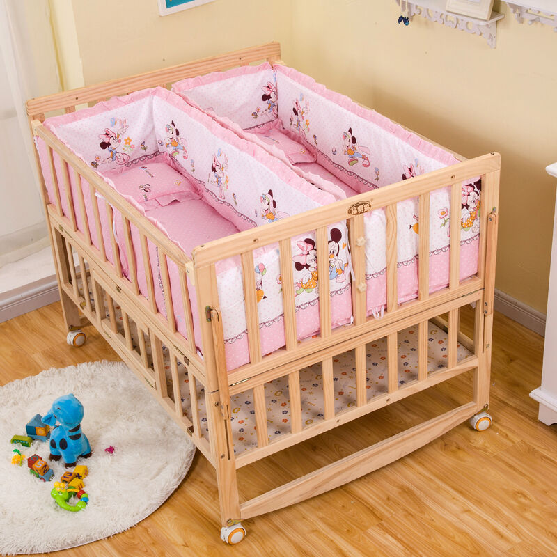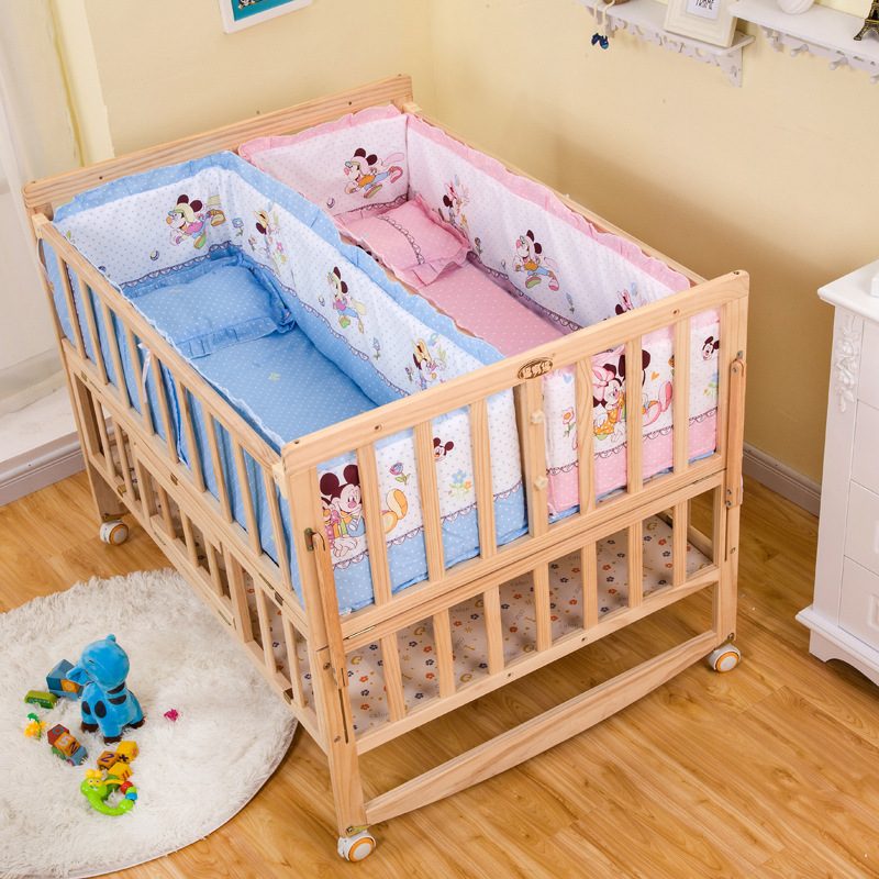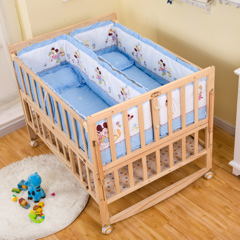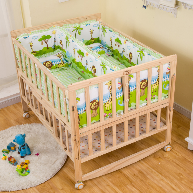 신생아 다기능 요람 침대 단단한 나무 이동식 더블 아기 침대 접합 대형 침대 bb