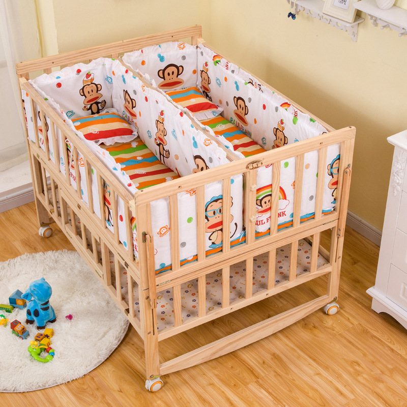 신생아 다기능 요람 침대 단단한 나무 이동식 더블 아기 침대 접합 대형 침대 bb스토어 가기