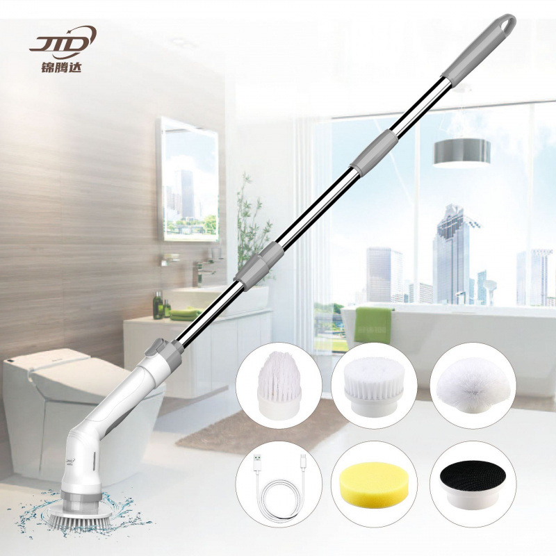 전원 디스플레이가있는 전기 청소 브러시 ​​2 단 회전식 전기 걸레 주방 욕실 긴 손잡이 청소 브러시
