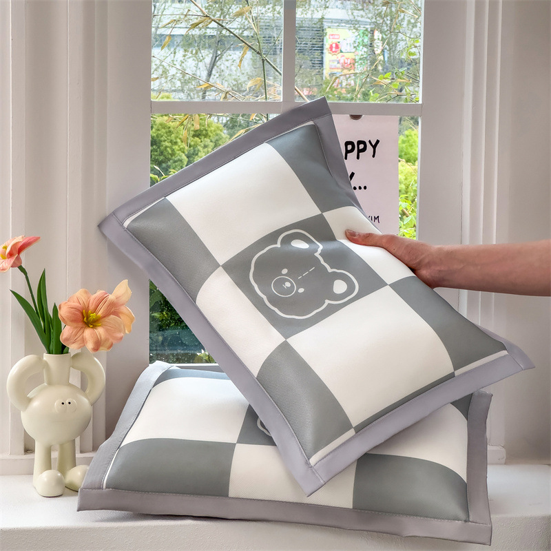 • 얼음 실크 베개 - 회색 체크무늬 곰