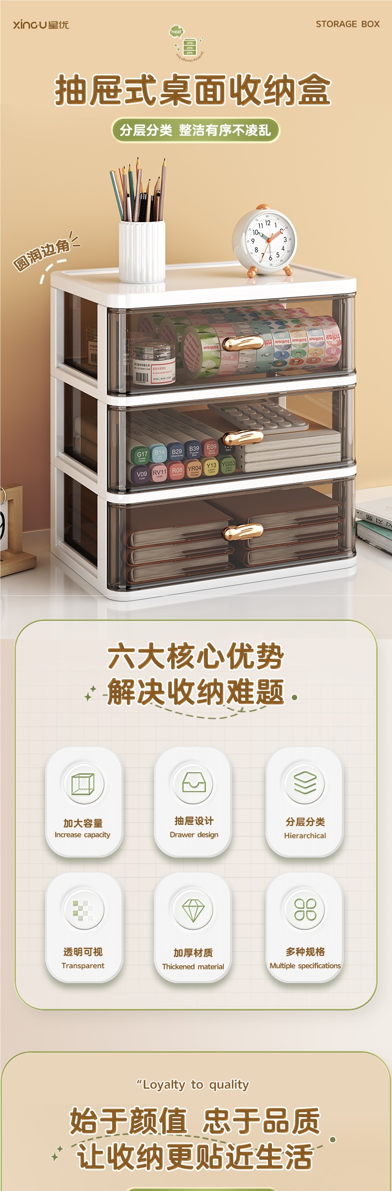 서랍형 데스크탑 수납함, 사무실 책상 수납함, 문구류 및 화장품 수납함, 워크스테이션 정리함스토어 가기