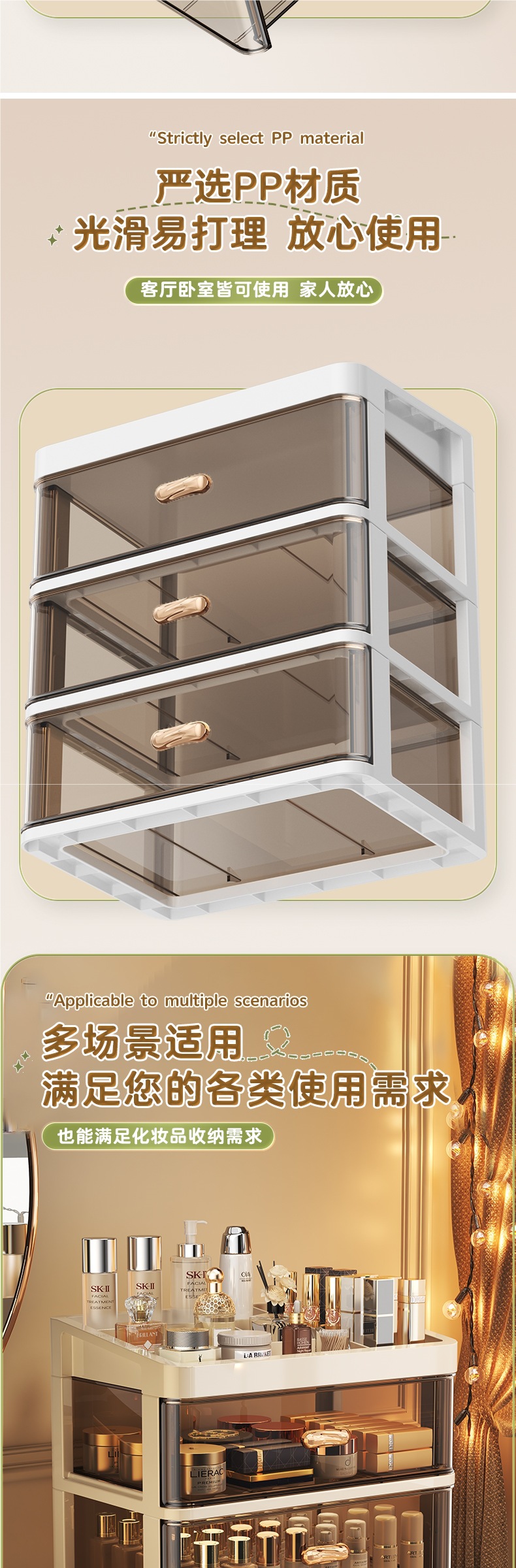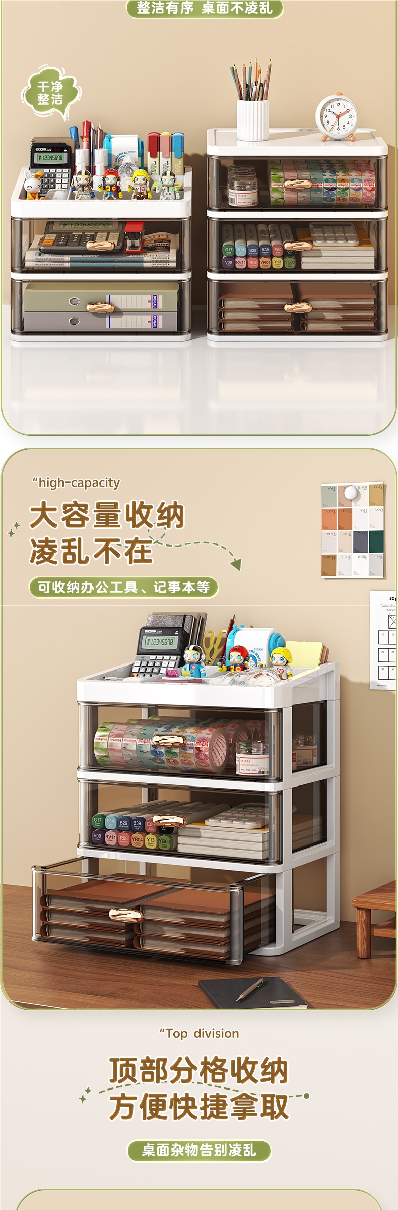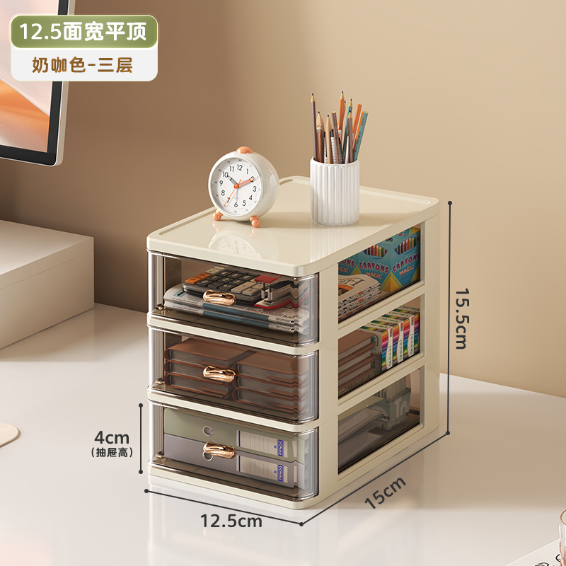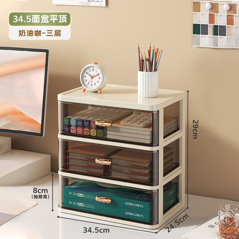 • 폭 34.5 - 크림 커피 [플랫탑 3단] A4용지 수납 가능