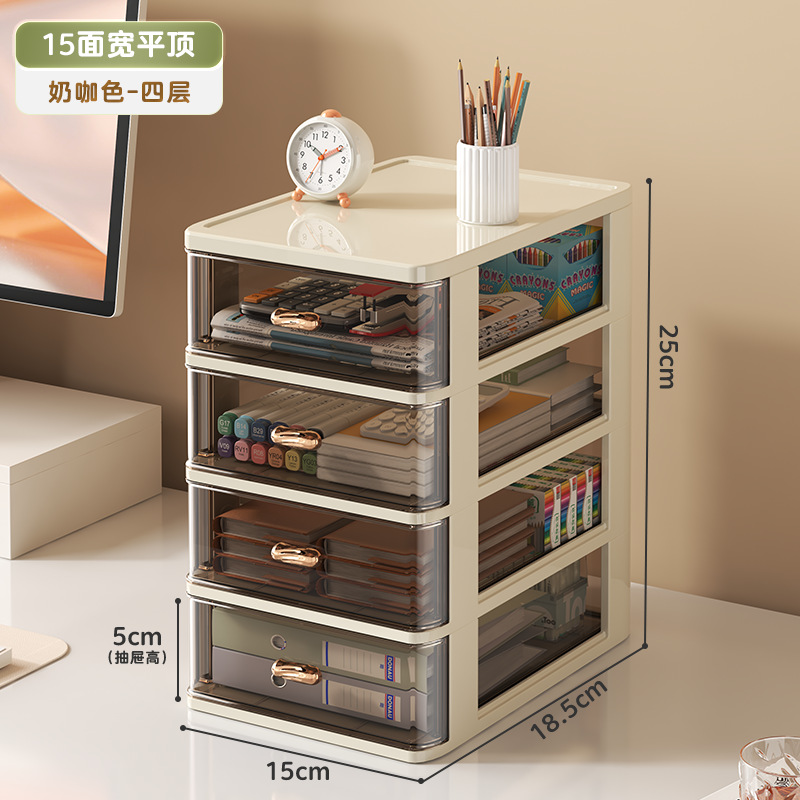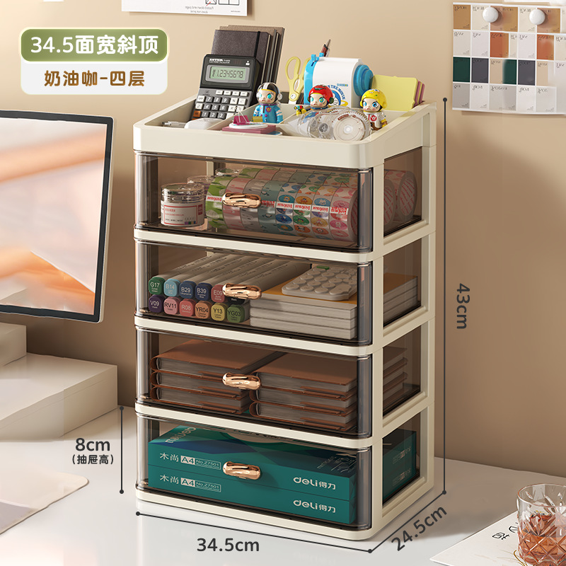 • 폭 34.5cm - 크림 커피 [플랫탑 4겹] A4용지 수납 가능