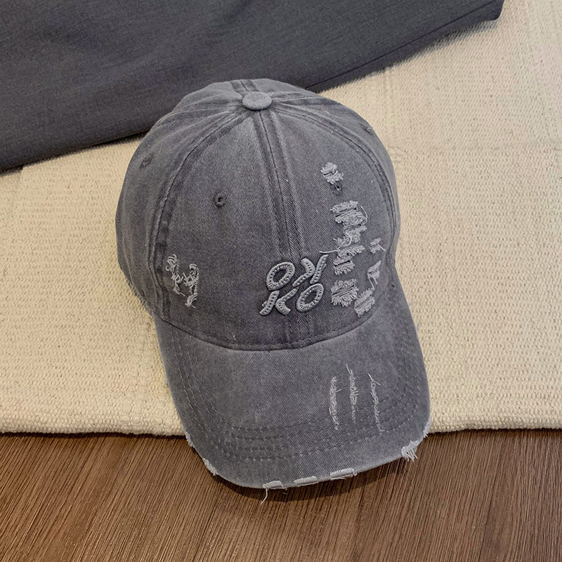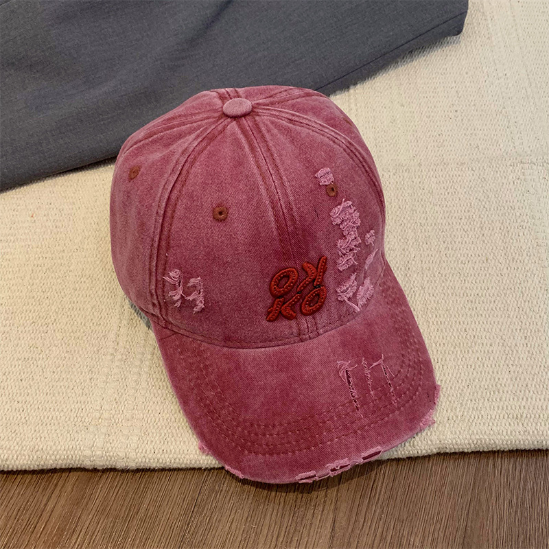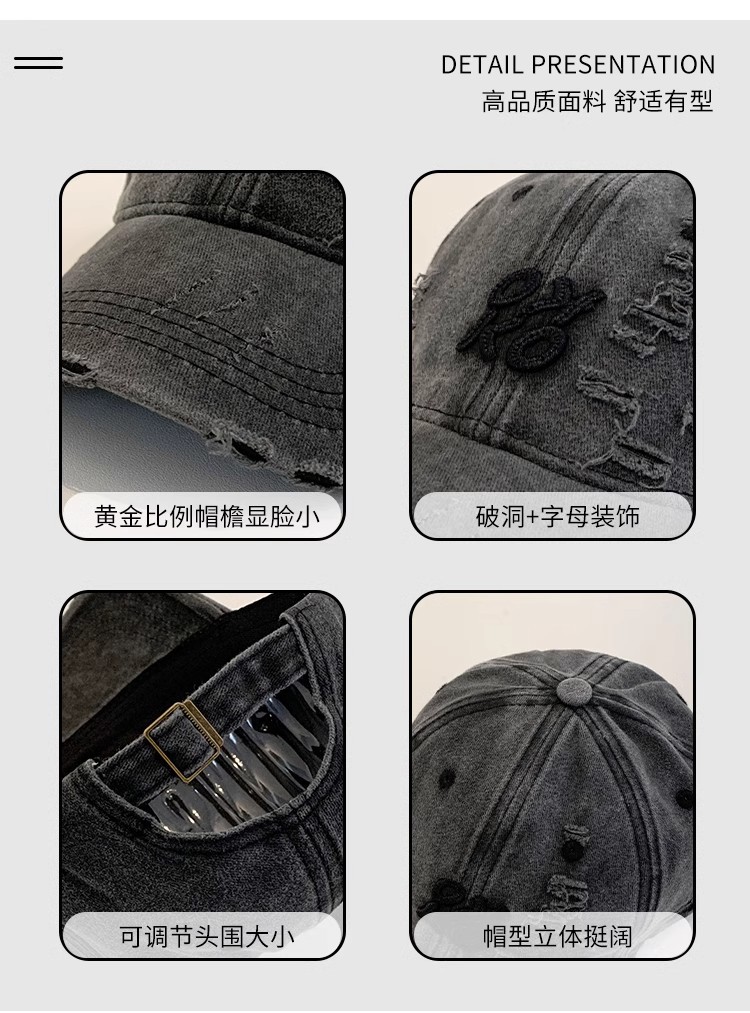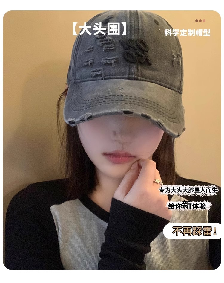 봄 여름 여성용 아메리칸 레트로 찢어진 야구 모자, 워싱 및 디스트레스드, 다용도 피크 캡, 큰 머리 둘레, 얼굴이 보이는 작은 모자, 트렌디함스토어 가기