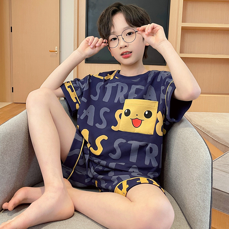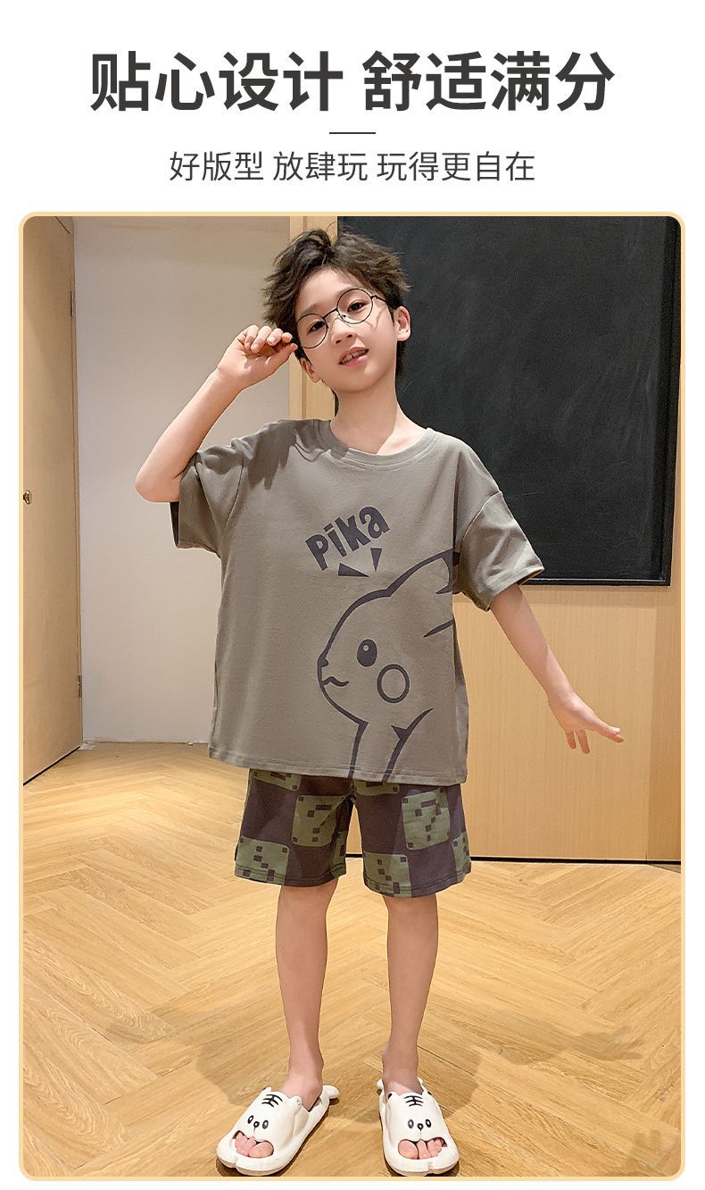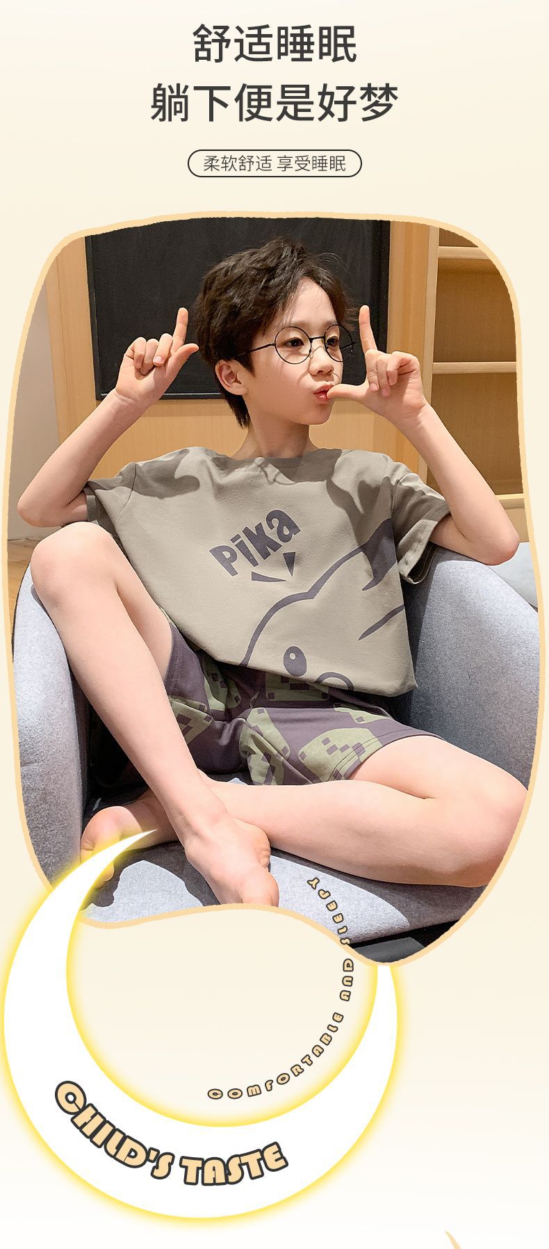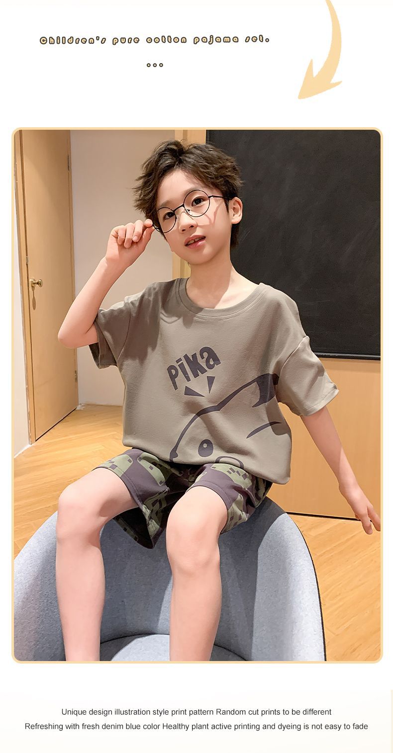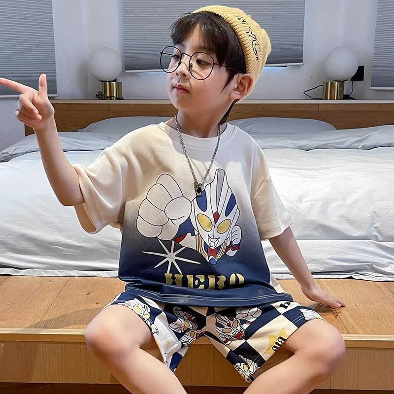 여름 어린이 반팔 반바지 정장 남성과 여성 아기 스포츠 소년 편안한 에어컨 옷 잠옷 투피스 세트