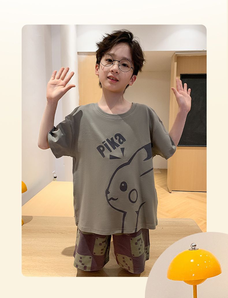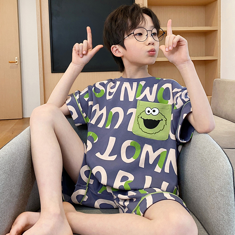 여름 어린이 반팔 반바지 정장 남성과 여성 아기 스포츠 소년 편안한 에어컨 옷 잠옷 투피스 세트스토어 가기