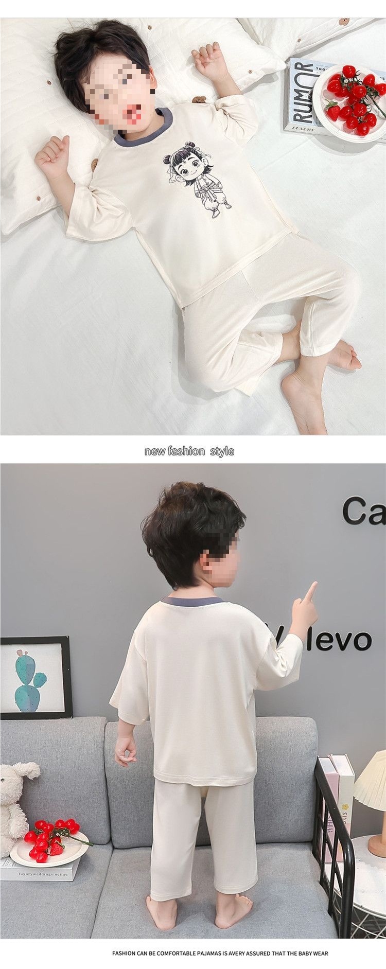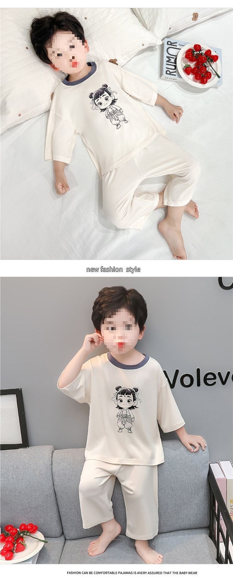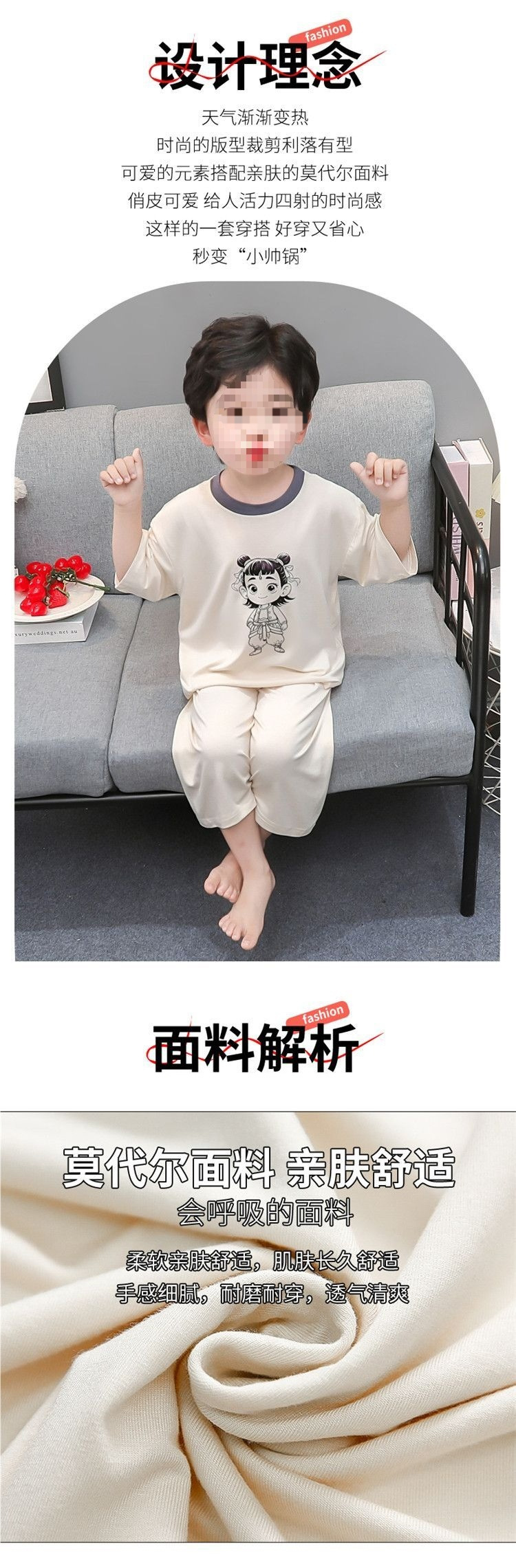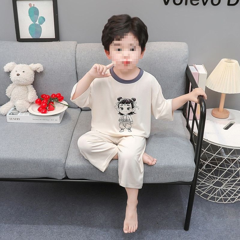 아동복 세트 모달 소년 여름 만화 7부 소매 에어컨 옷 얇은 소년 아기 잠옷