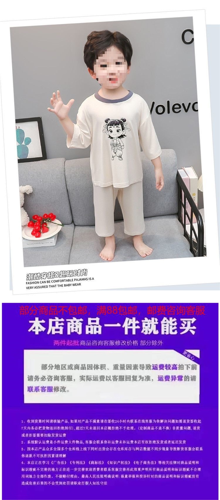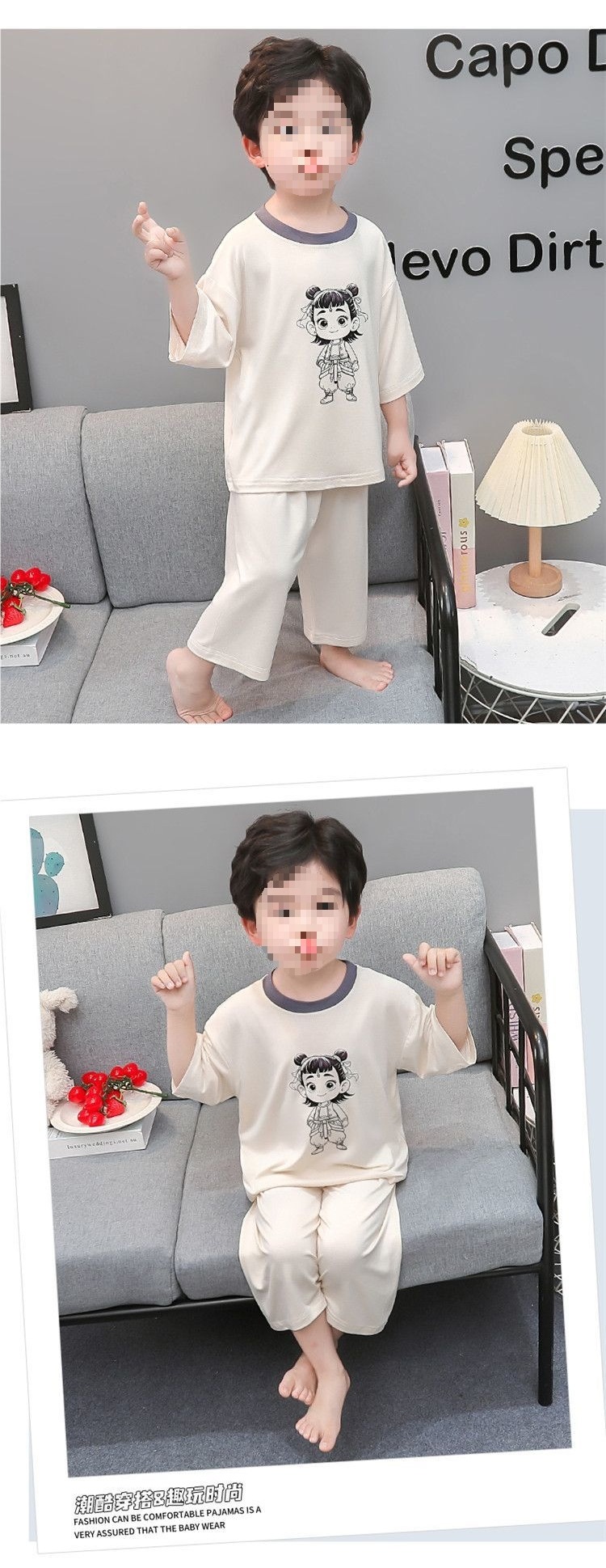 아동복 세트 모달 소년 여름 만화 7부 소매 에어컨 옷 얇은 소년 아기 잠옷스토어 가기