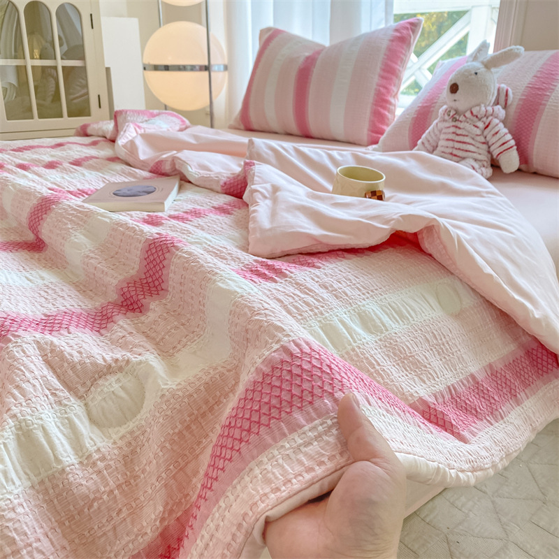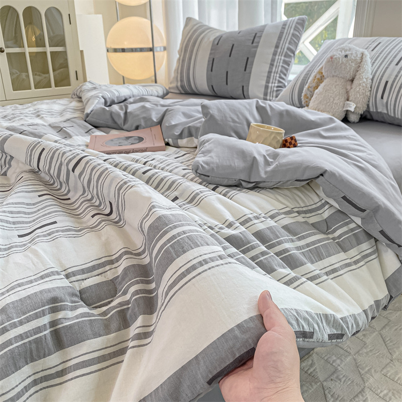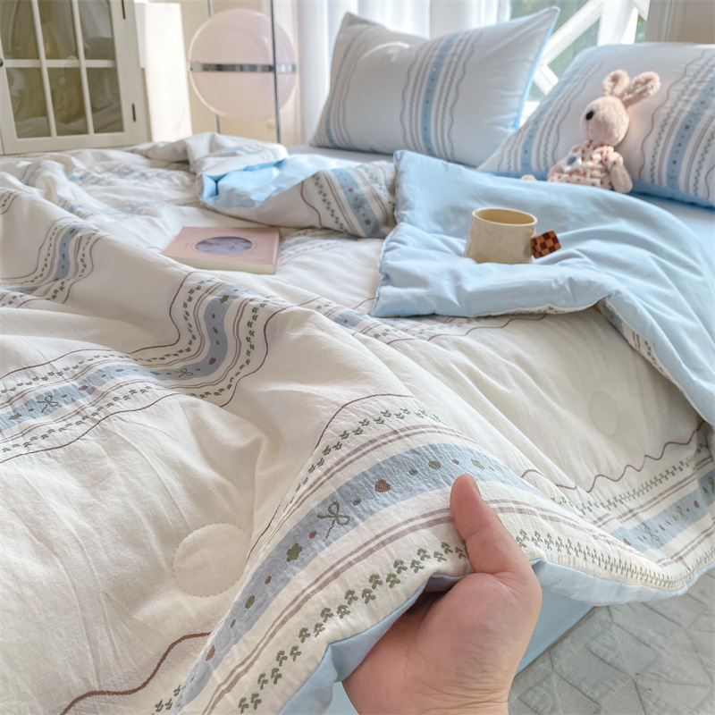 순면 자카드 콩 섬유 여름 시원한 이불 순면 2025 새로운 기계 세탁 가능한 싱글 및 더블 에어컨 이불스토어 가기