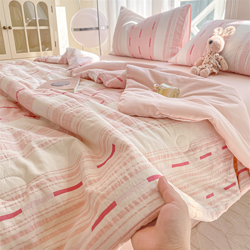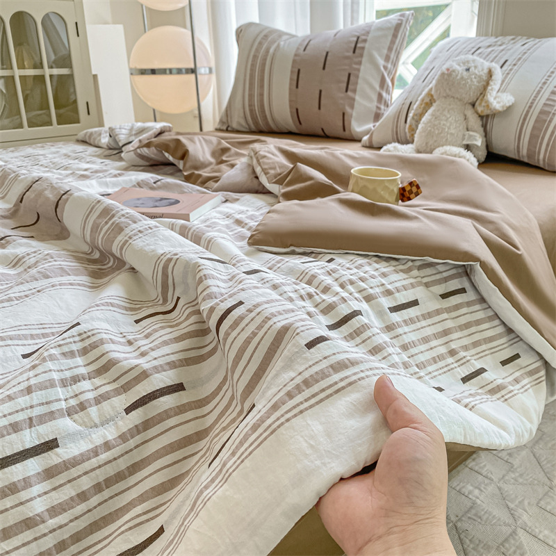 순면 자카드 콩 섬유 여름 시원한 이불 순면 2025 새로운 기계 세탁 가능한 싱글 및 더블 에어컨 이불