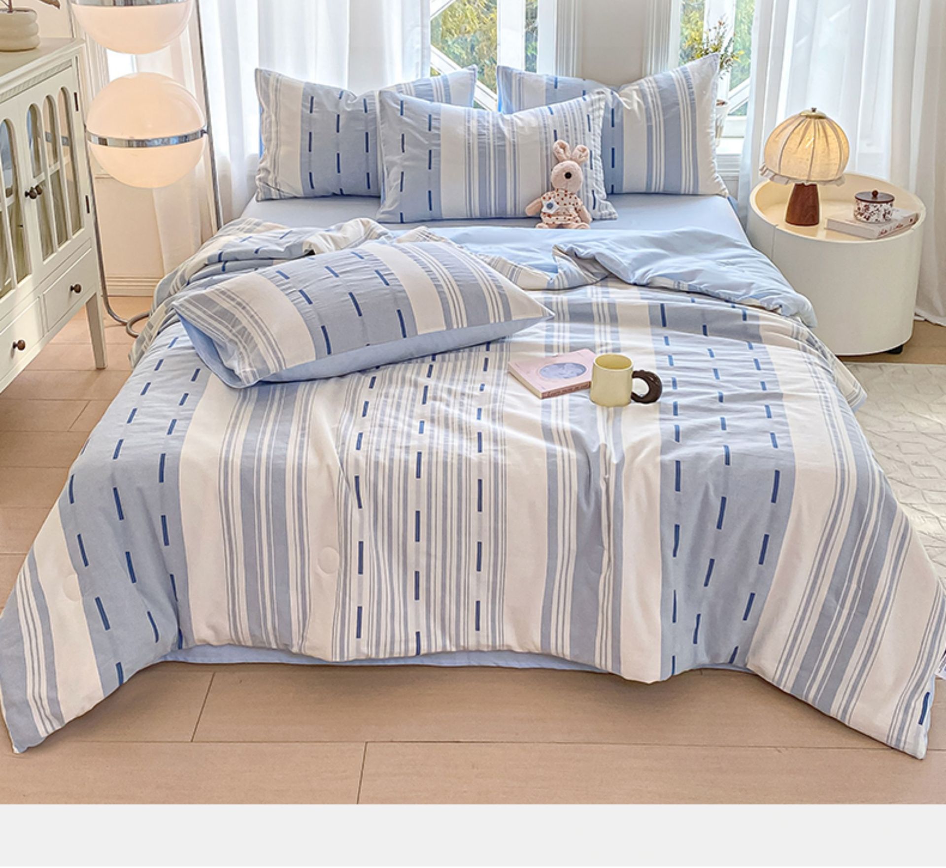 • 1.5m 침대 여름 이불 4종 세트: 여름 이불 150x200cm + 시트 245x250cm + 베갯잇 한 쌍