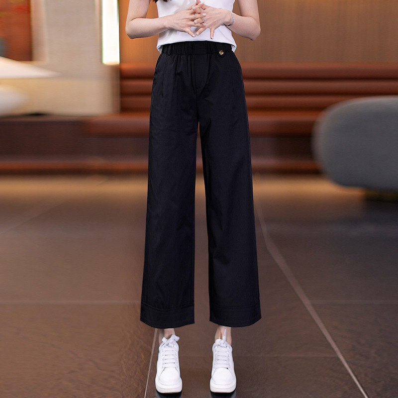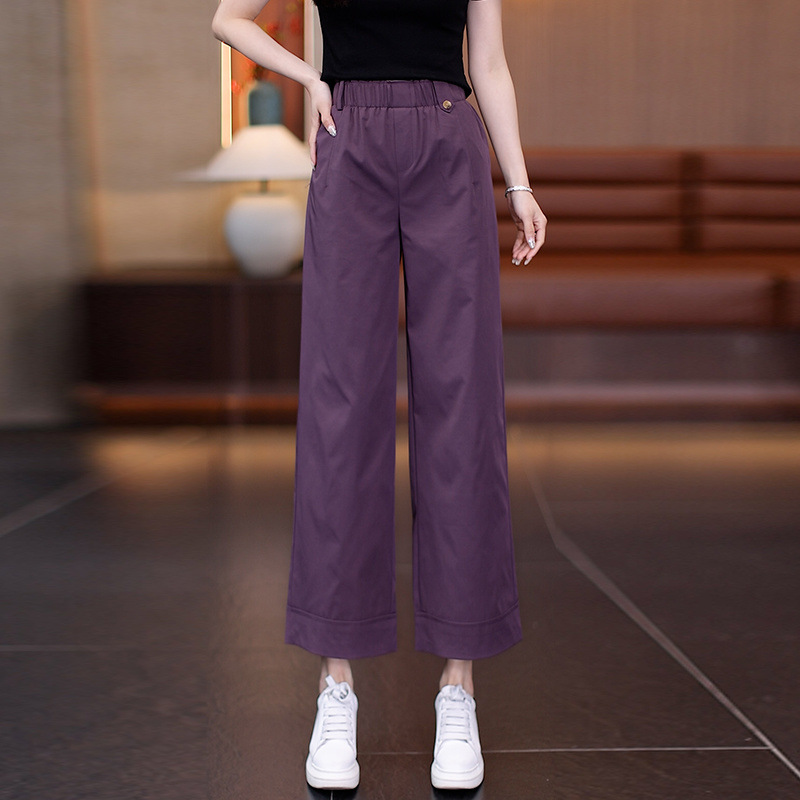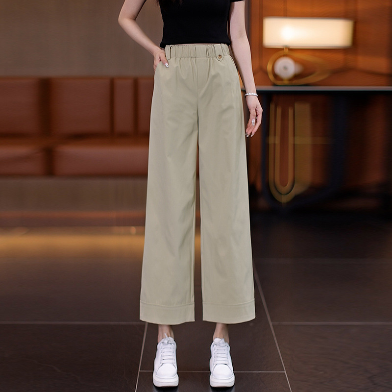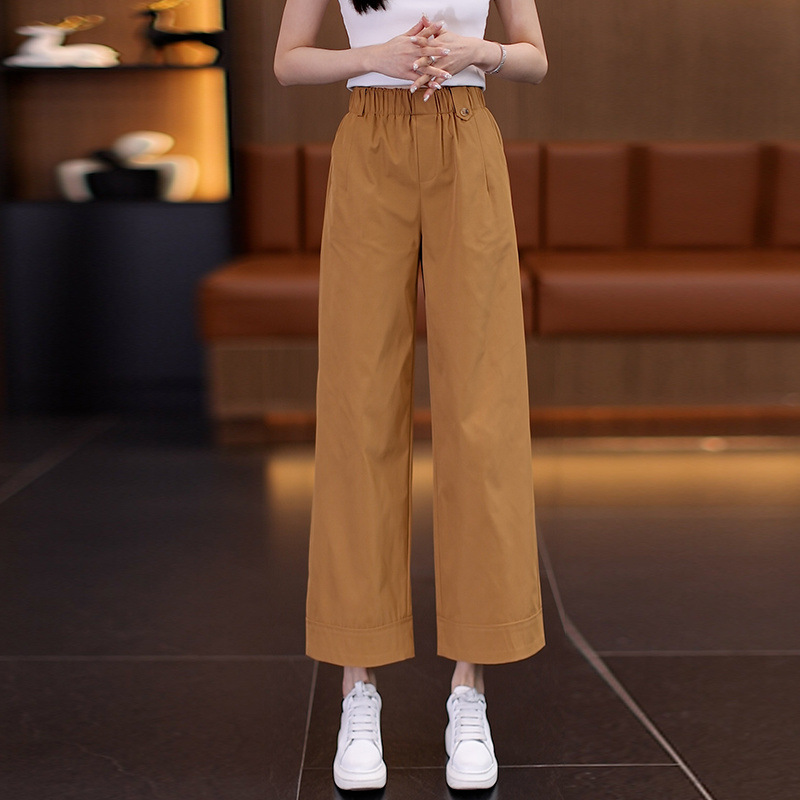 여성용 9부 와이드 팬츠 2025 여름 신작 꽃봉오리 신축성 있는 허리 얇은 슬림 스트레이트 팬츠 캐주얼 오렌지 팬츠