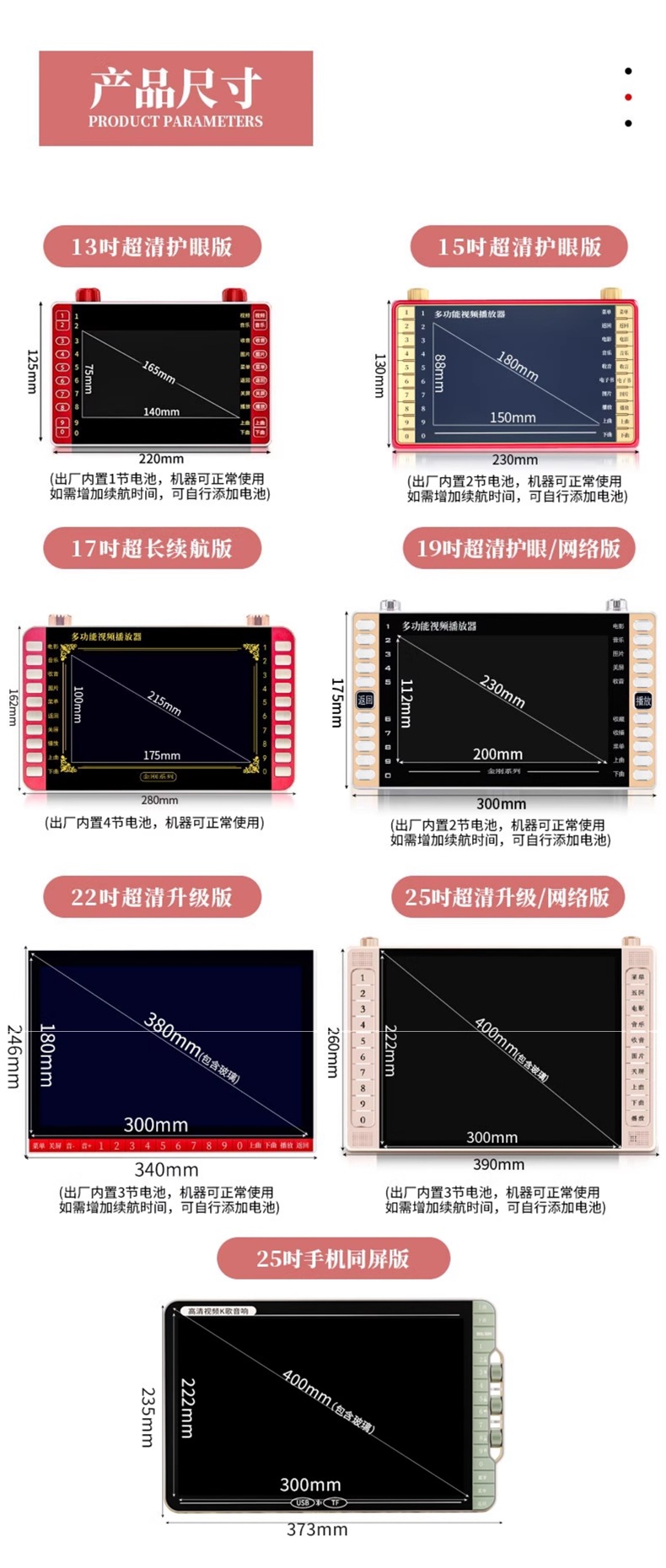 노인들이 극장을 보는 기계, 광장 댄스 비디오 플레이어, 노인들이 극을 듣고 노래하는 기계, 특수 휴대용 소형 TV