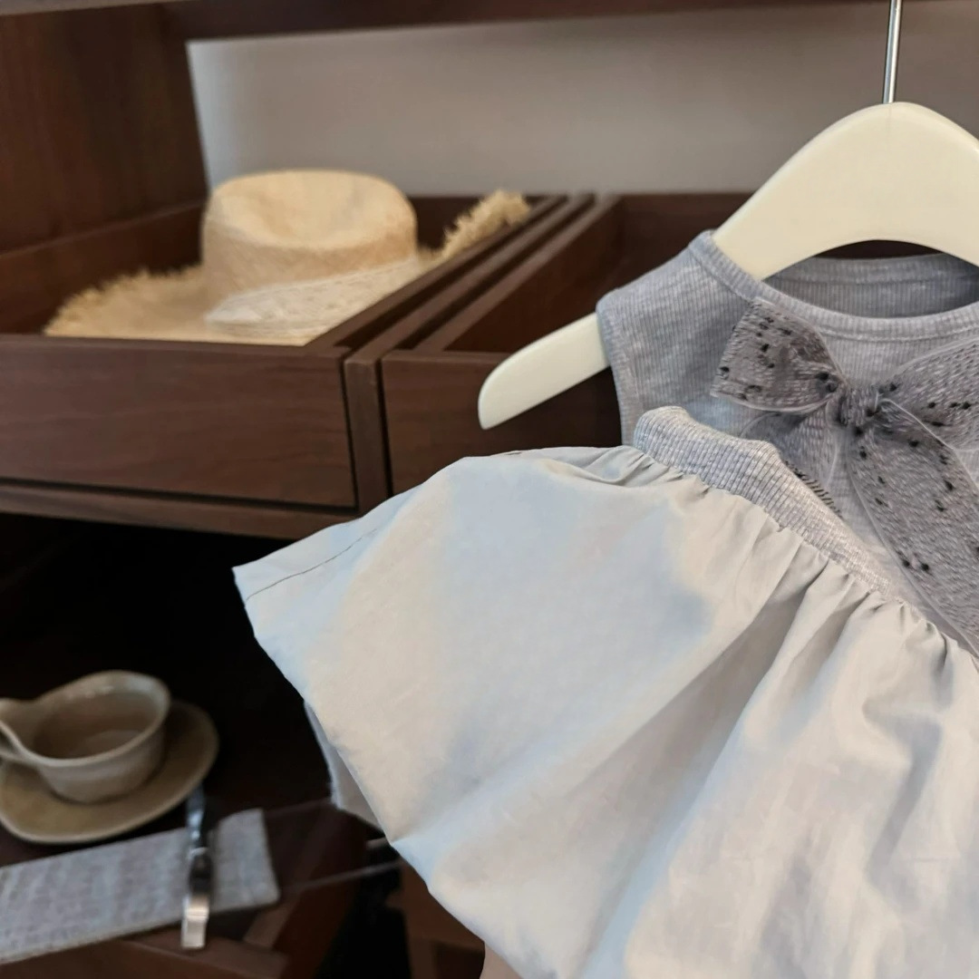 【Ningli】발레 소녀! 여아 레이시 그레이 아이스 느낌의 스레드 퍼프 조끼 스커트 스위트 프린세스 스커트 트렌디스토어 가기