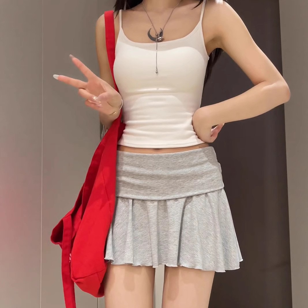여성을위한 회색 핫 소녀 스포츠 짧은 치마 여름 2025 새로운 하이 웨이스트 슬림 플리츠 스커트 작은 사람들을위한 노출 방지 테니스 스커트스토어 가기
