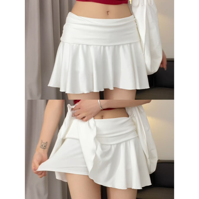 여성을위한 회색 핫 소녀 스포츠 짧은 치마 여름 2025 새로운 하이 웨이스트 슬림 플리츠 스커트 작은 사람들을위한 노출 방지 테니스 스커트