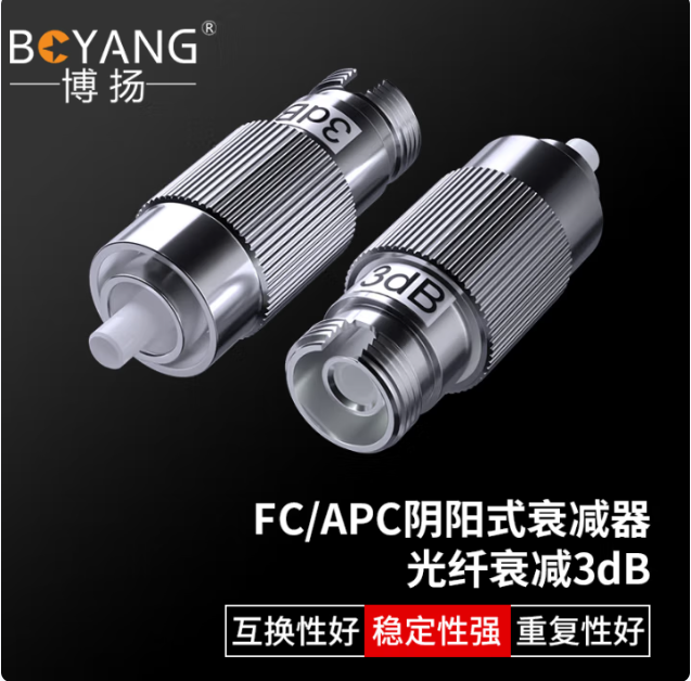 博扬(BOYANG) BY-SJ303A1 电信级光纤衰减器 FC/APC阴阳式3dB 公母对接式转换适配器*1 合格证*1
