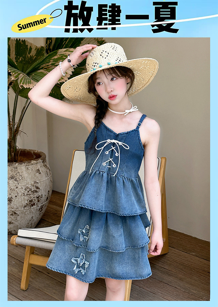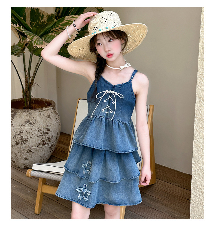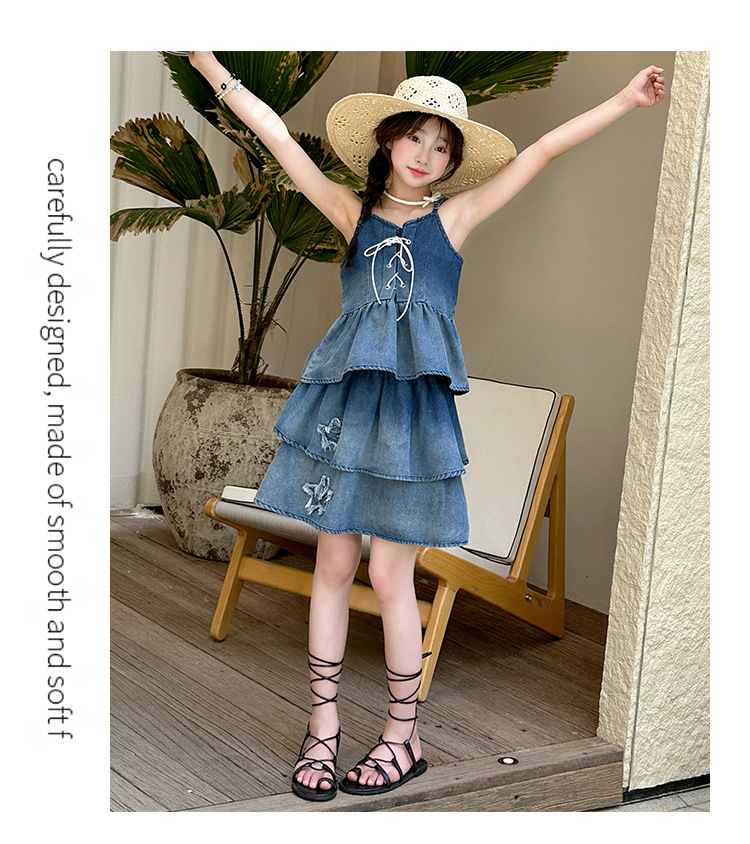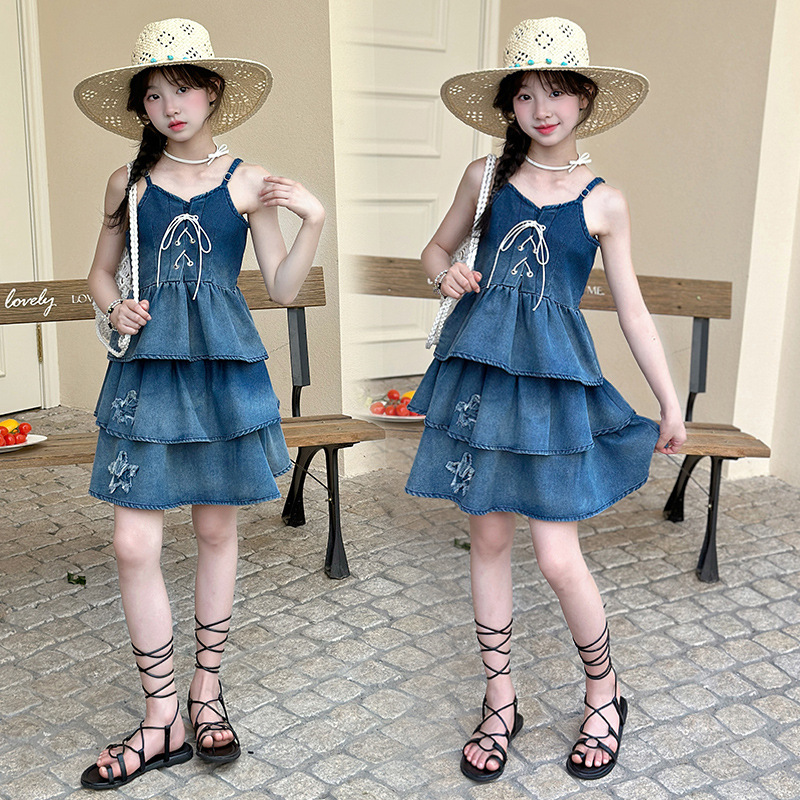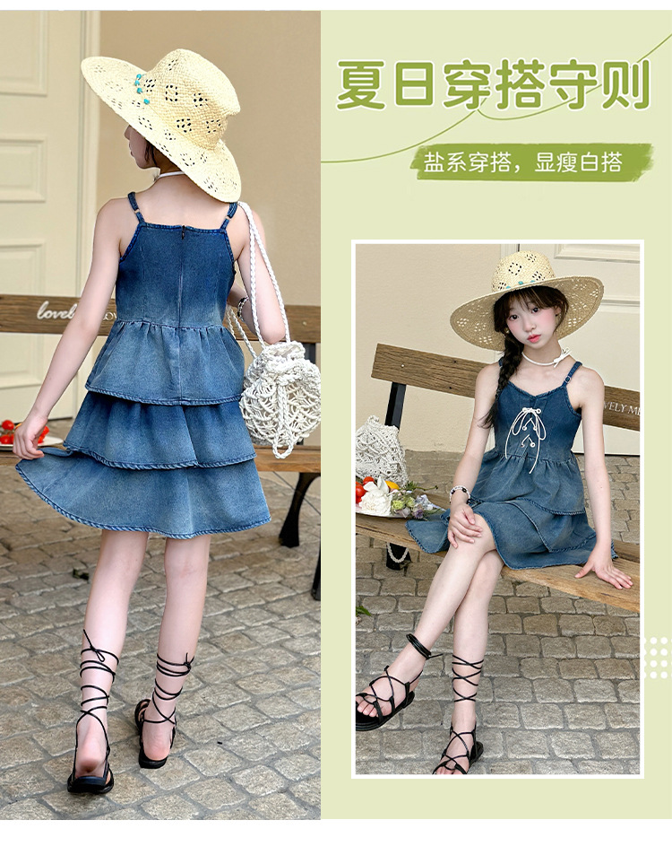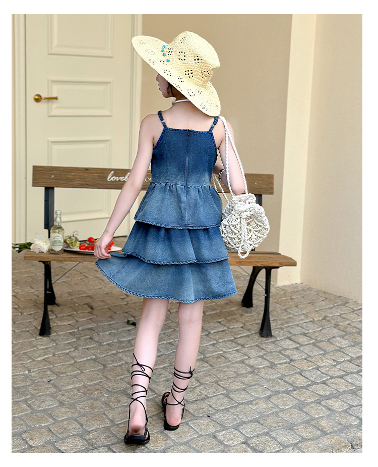 여자 대학 스타일 복고풍 데님 서스펜더 드레스 여름 디자인 오각형 퍼프 케이크 드레스 공주 드레스스토어 가기