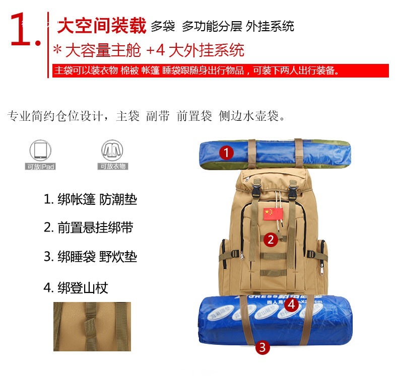 100L 용량 배낭 남성용 초대형 방수 여행 야외 등산 가방 캠핑 작업 수하물 여행
