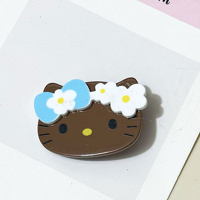 귀여운 더블 레이어 블랙 가죽 하와이 kt 고양이 복고풍 머리핀 달콤한 소녀 Duckbill 클립 앞머리 사이드 머리핀 헤어 액세서리