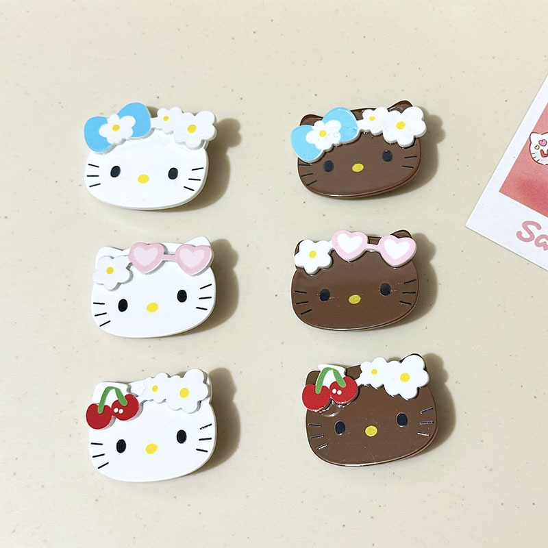 귀여운 더블 레이어 블랙 가죽 하와이 kt 고양이 복고풍 머리핀 달콤한 소녀 Duckbill 클립 앞머리 사이드 머리핀 헤어 액세서리스토어 가기