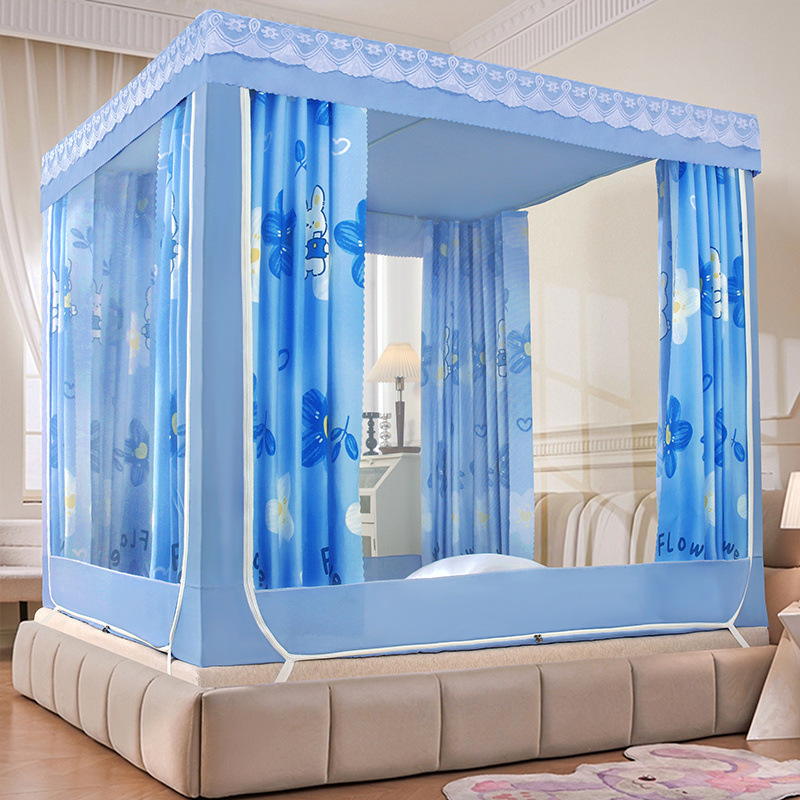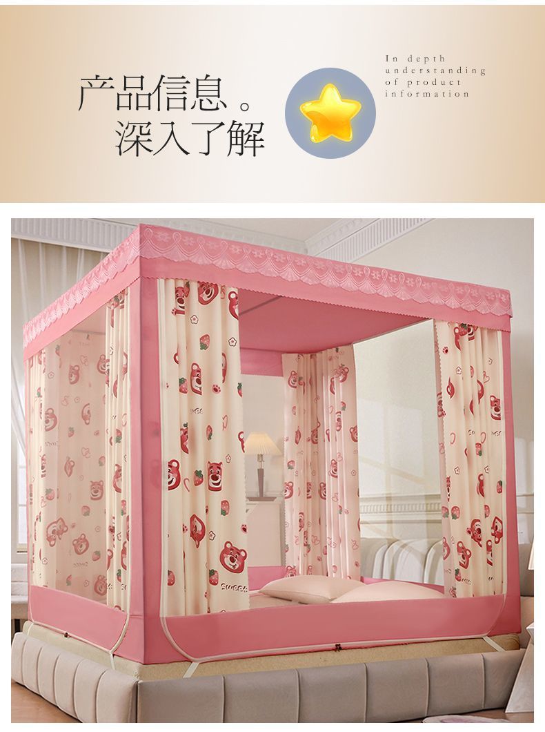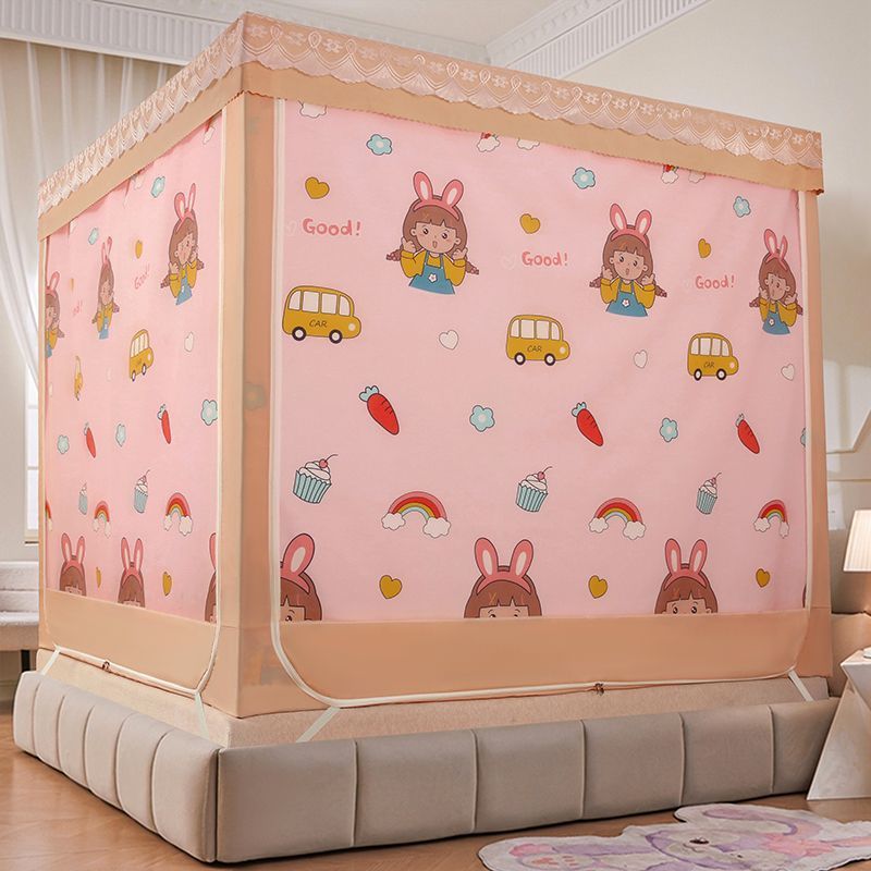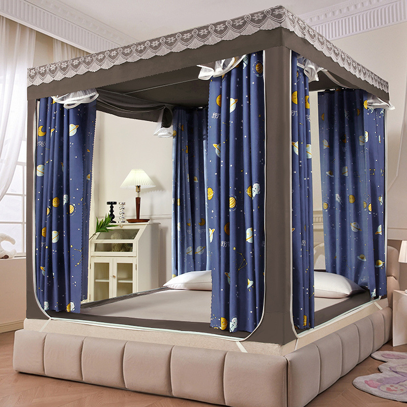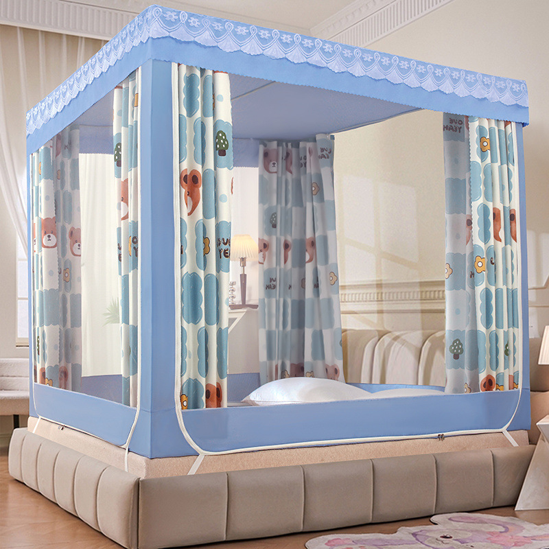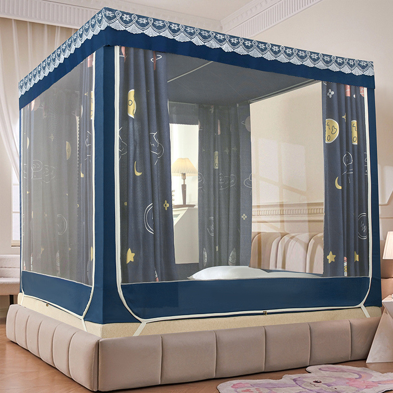 가정용 차광 침대 커튼 일체형 어린이 모기장 지퍼 3 도어 완전 밀폐형 1.8 침대 커튼 방진 탑 낙하 방지스토어 가기