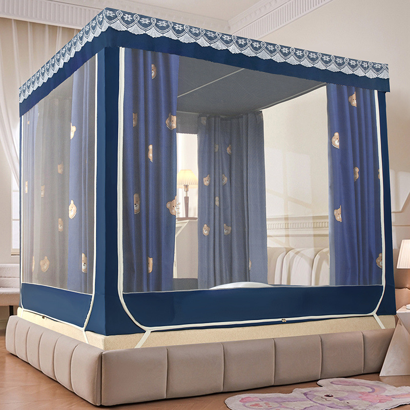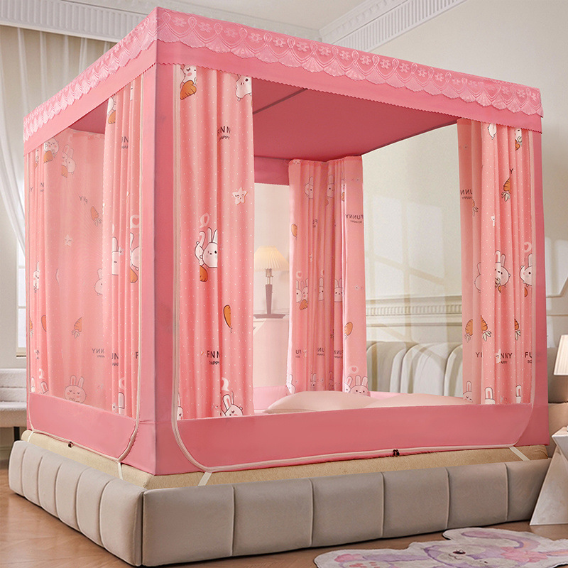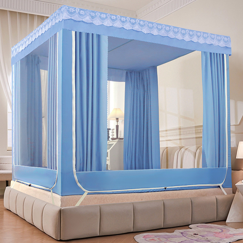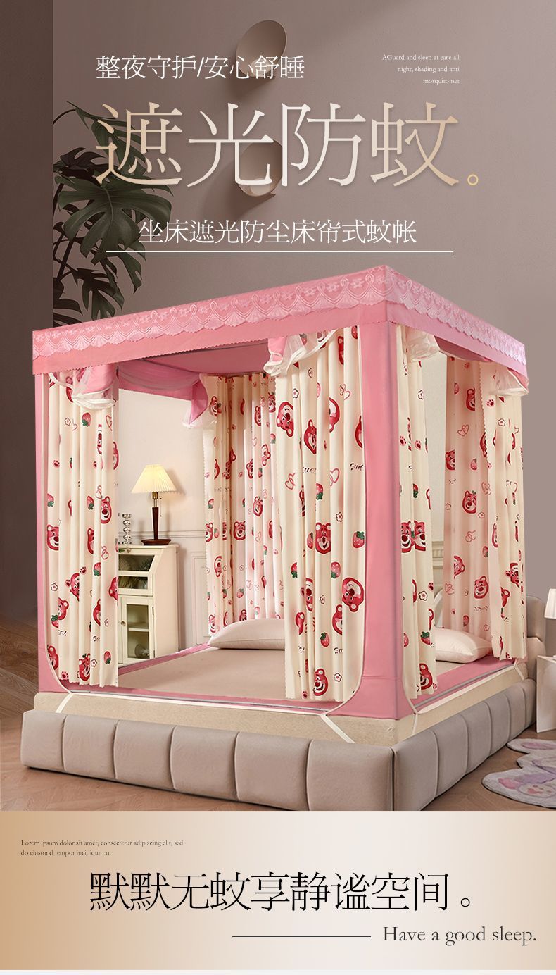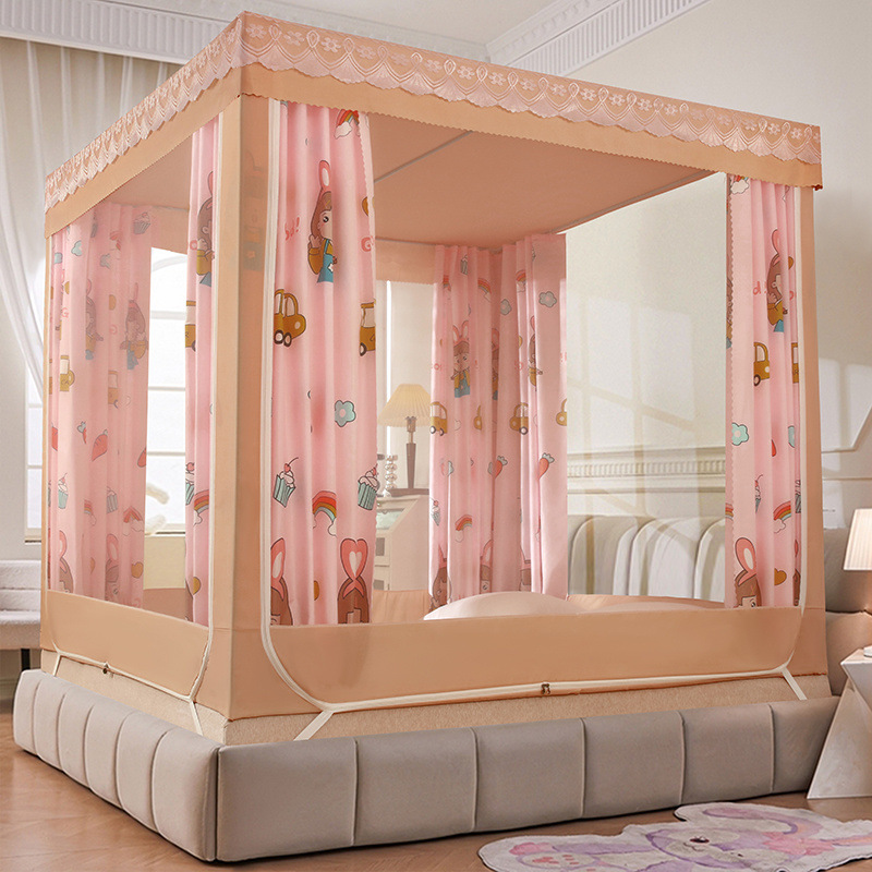 가정용 차광 침대 커튼 일체형 어린이 모기장 지퍼 3 도어 완전 밀폐형 1.8 침대 커튼 방진 탑 낙하 방지스토어 가기