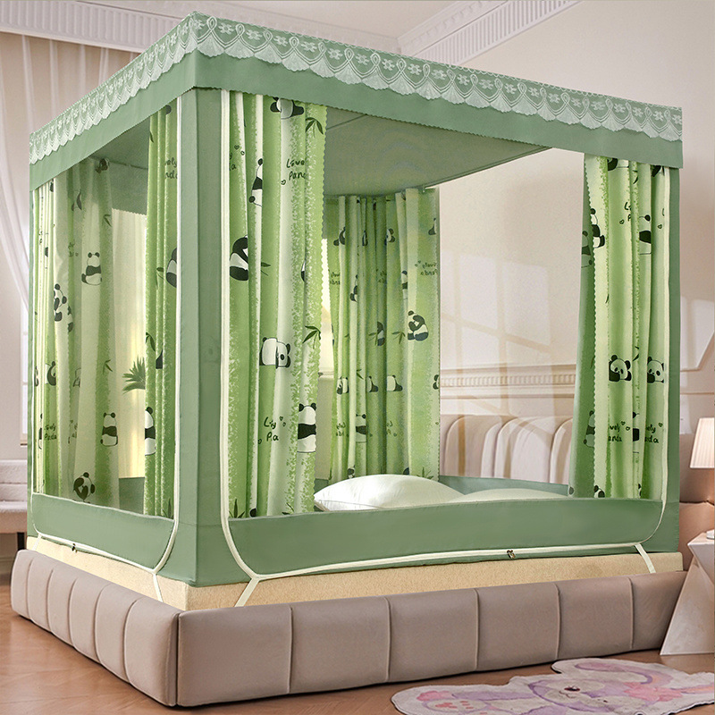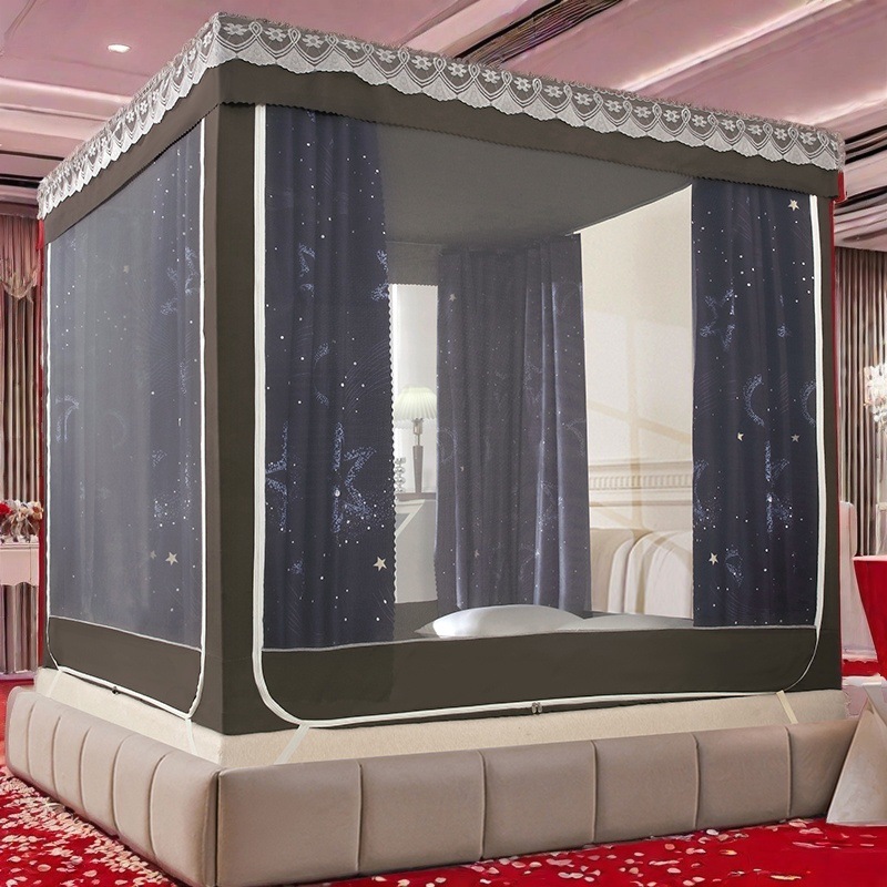 가정용 차광 침대 커튼 일체형 어린이 모기장 지퍼 3 도어 완전 밀폐형 1.8 침대 커튼 방진 탑 낙하 방지
