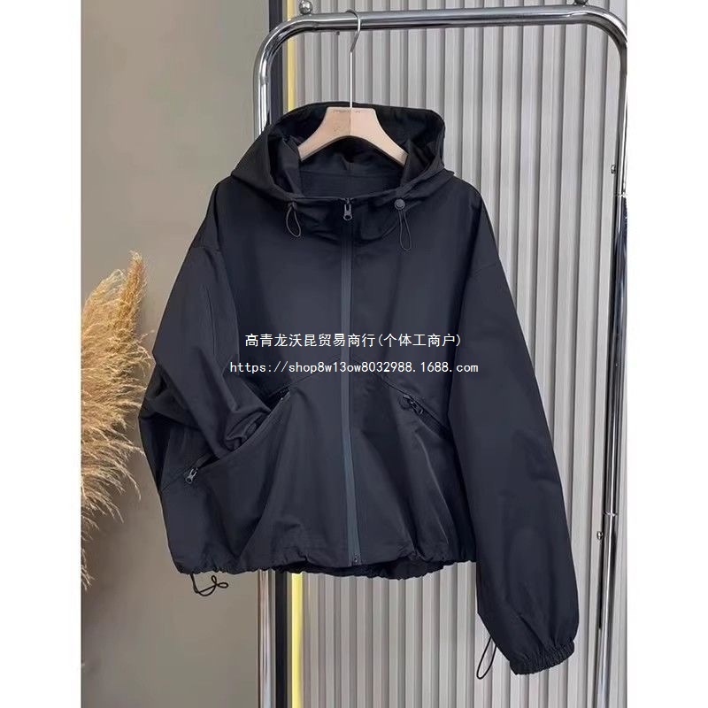 Fat mm 150kg 유럽 방수 재킷 여성 봄, 가을 한국 스타일 작은 인기 외국 스타일 캐주얼 탑