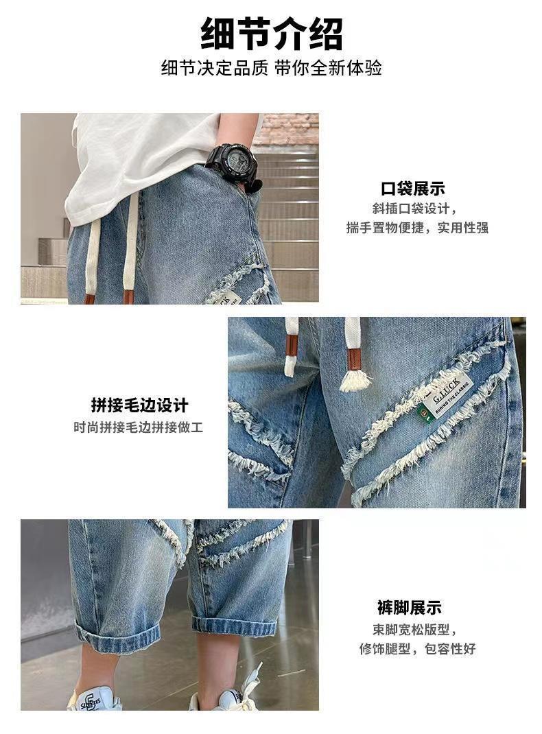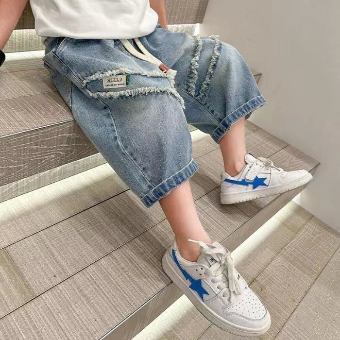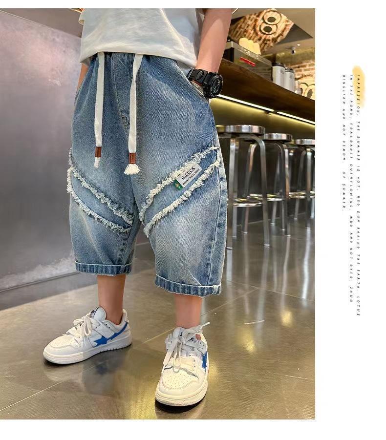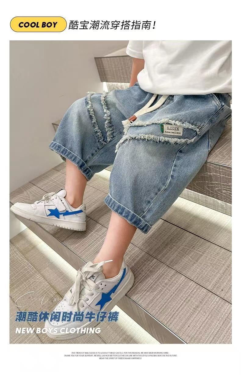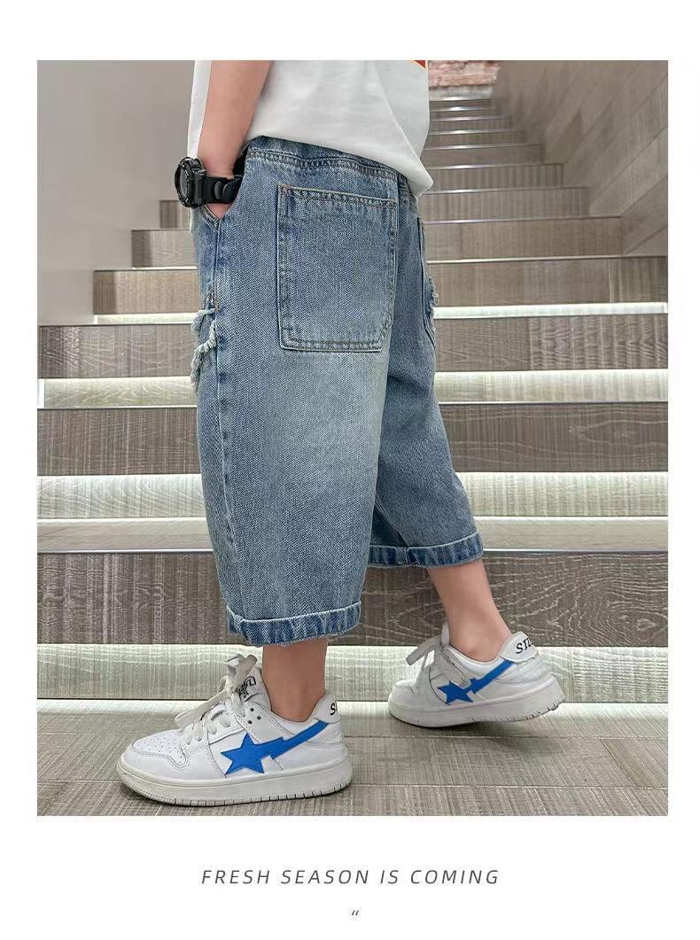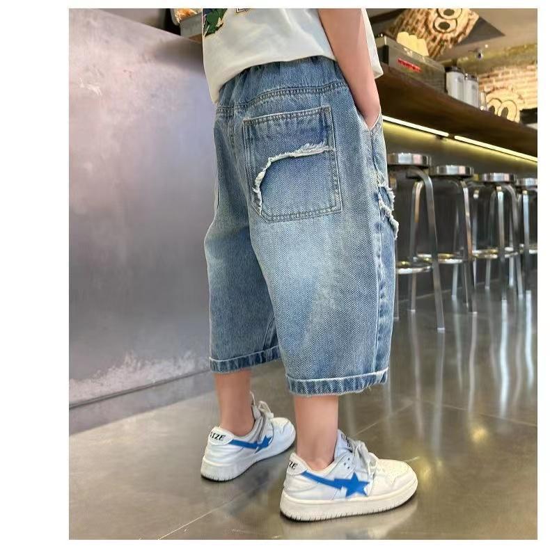 남아 데님 반바지 여름 신작 중대형 아동용 루즈한 얇은 크롭 팬츠 남아 캐주얼 루즈 트렌디 쿨 아동용 바지스토어 가기