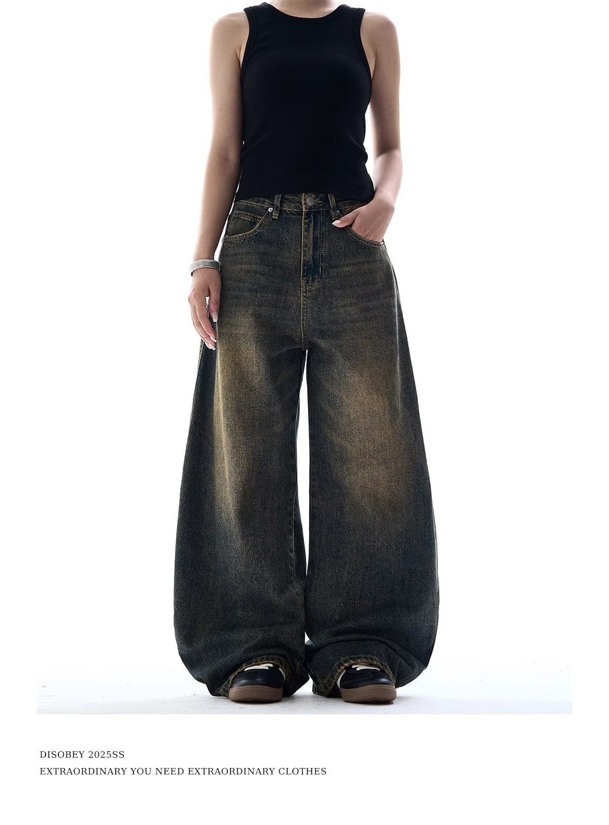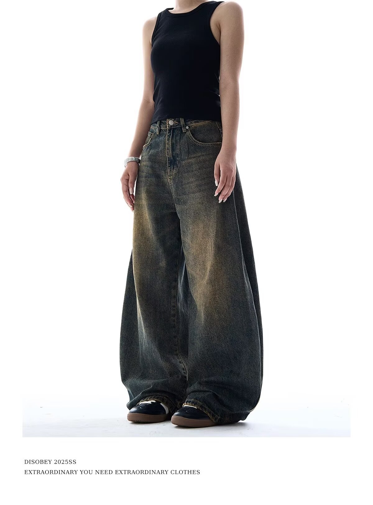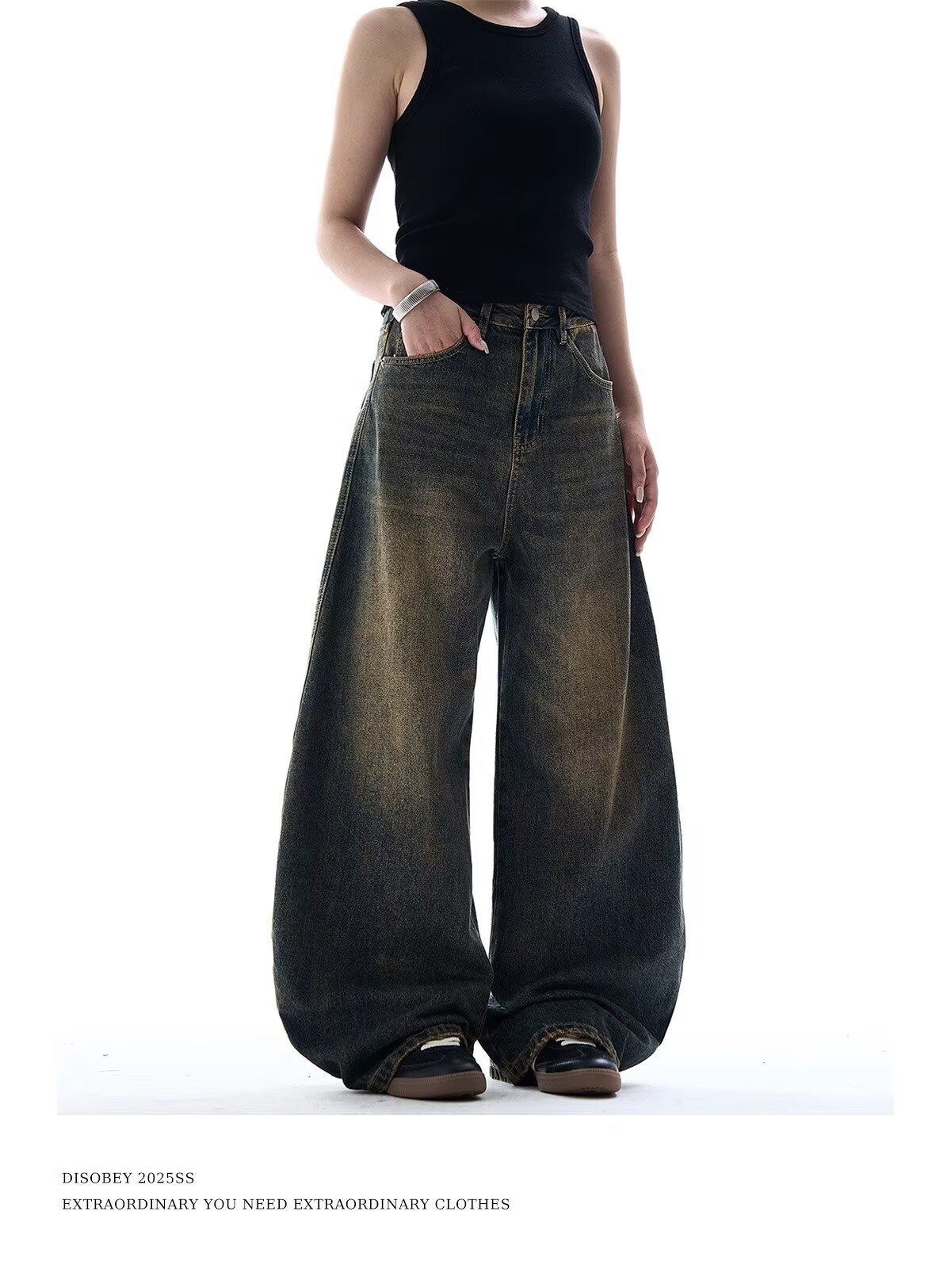 크로스보더 블랙 타이다이 새로운 스타일 슬림 와이드 레그 바닥 길이 디스트레스드 다용도 루즈핏 여성용 청바지에 적합 워싱스토어 가기