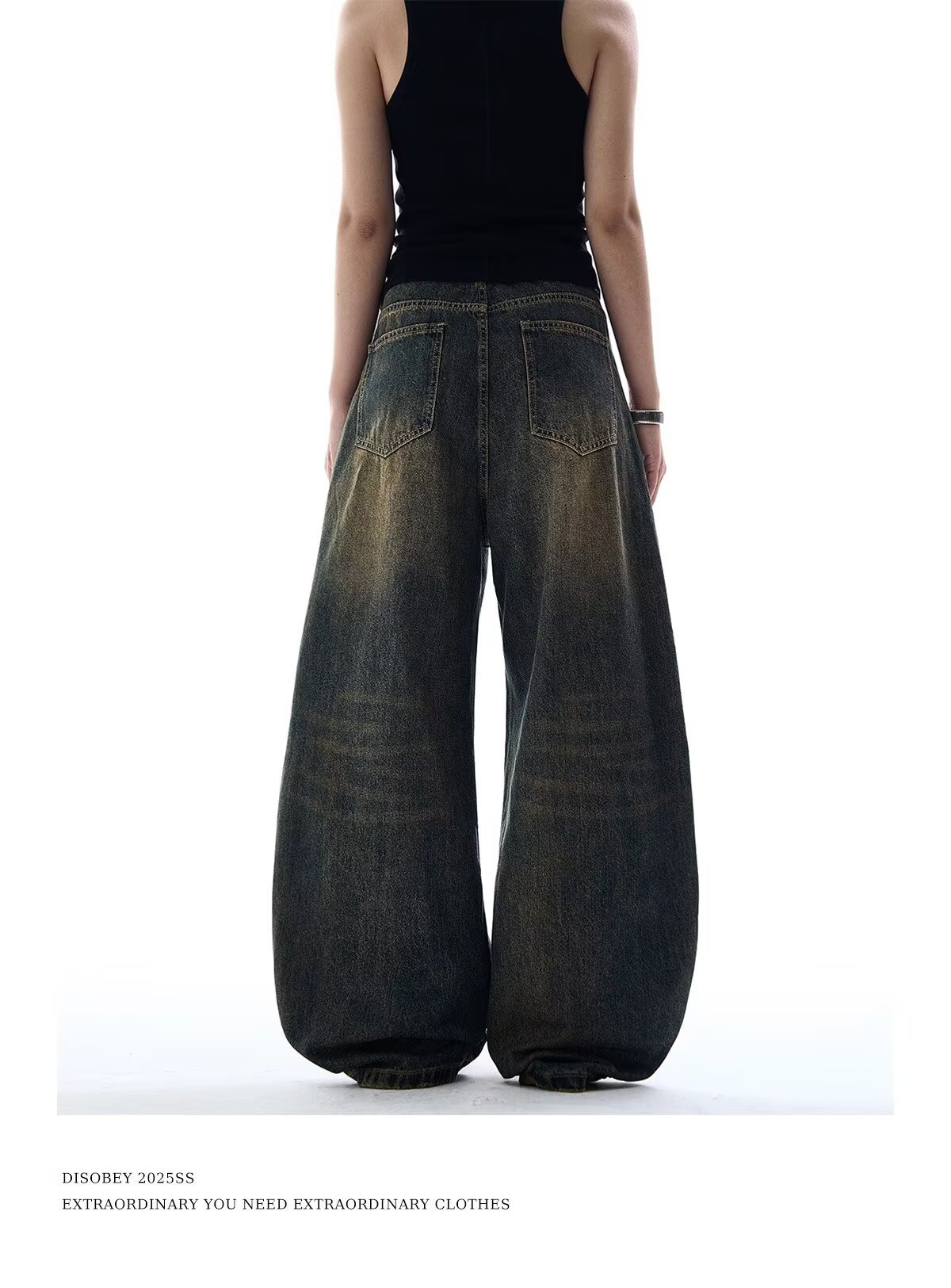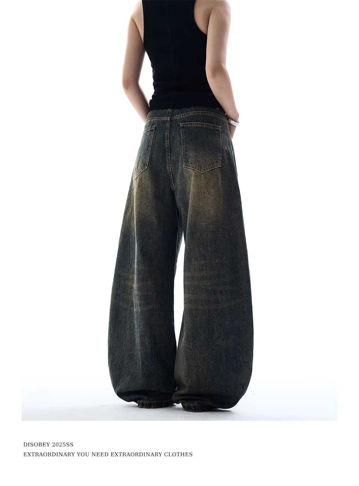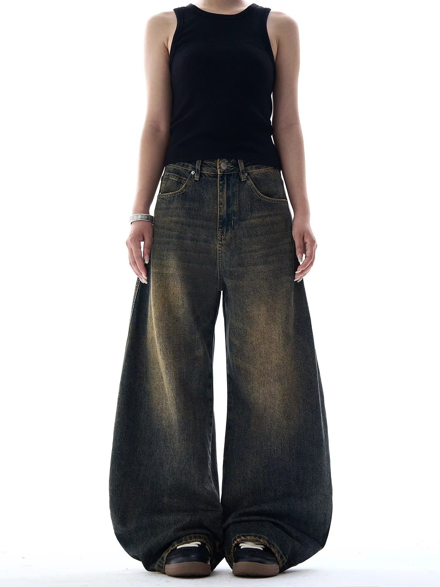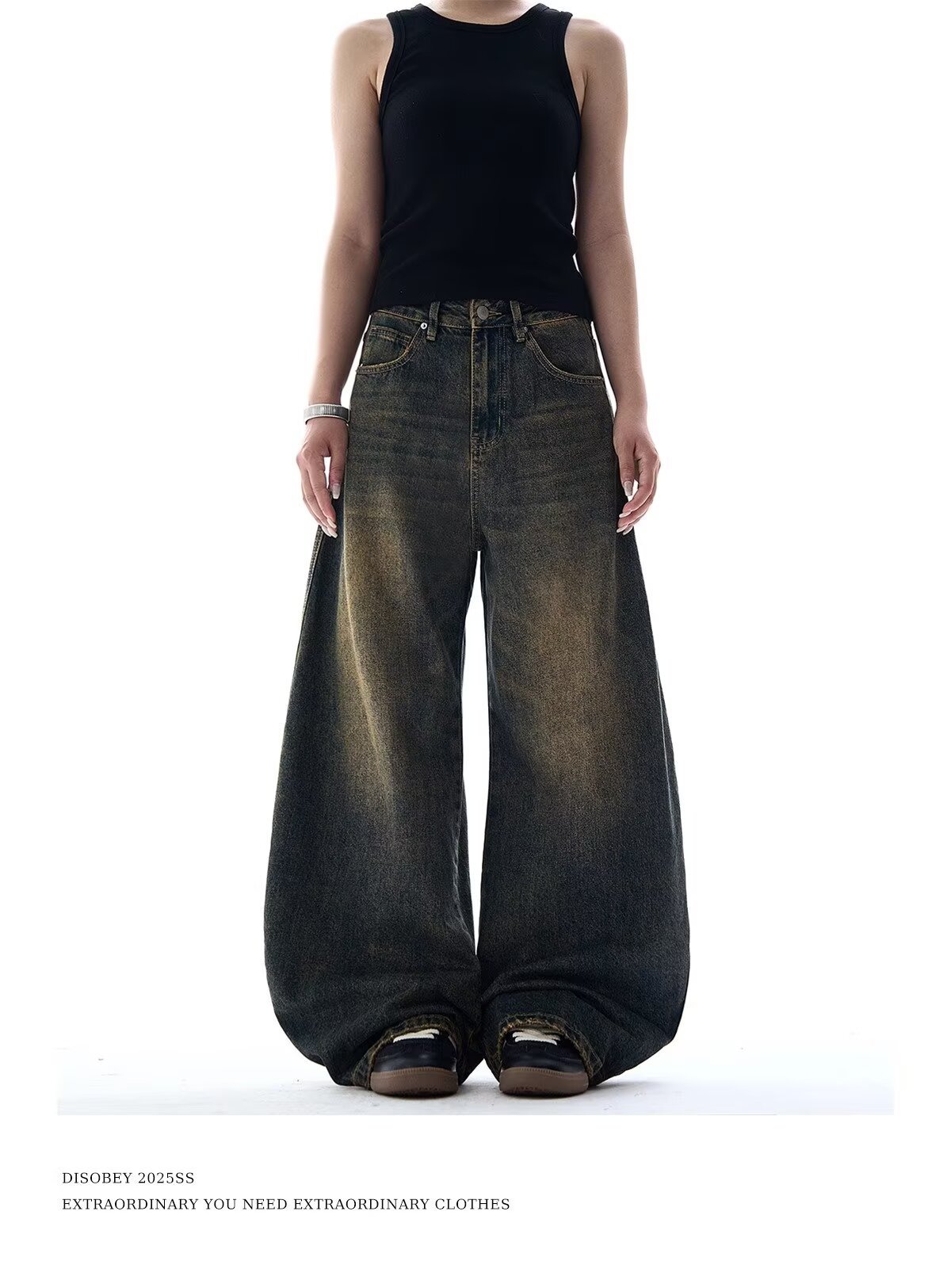 크로스보더 블랙 타이다이 새로운 스타일 슬림 와이드 레그 바닥 길이 디스트레스드 다용도 루즈핏 여성용 청바지에 적합 워싱스토어 가기