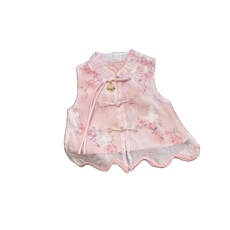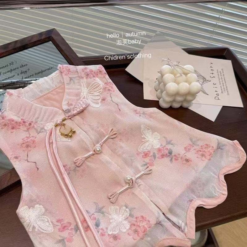 여자 여름 새로운 중국 스타일 국가 스타일 정장 2025 새로운 아기 스타일 조끼 반바지 여름 옷 고대 스타일 투피스 세트