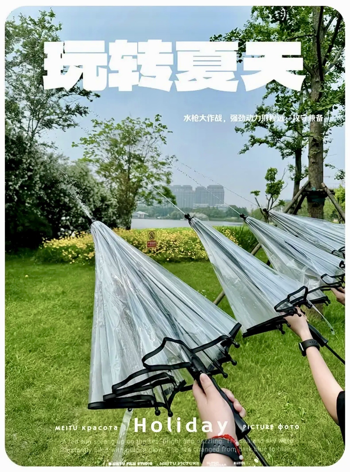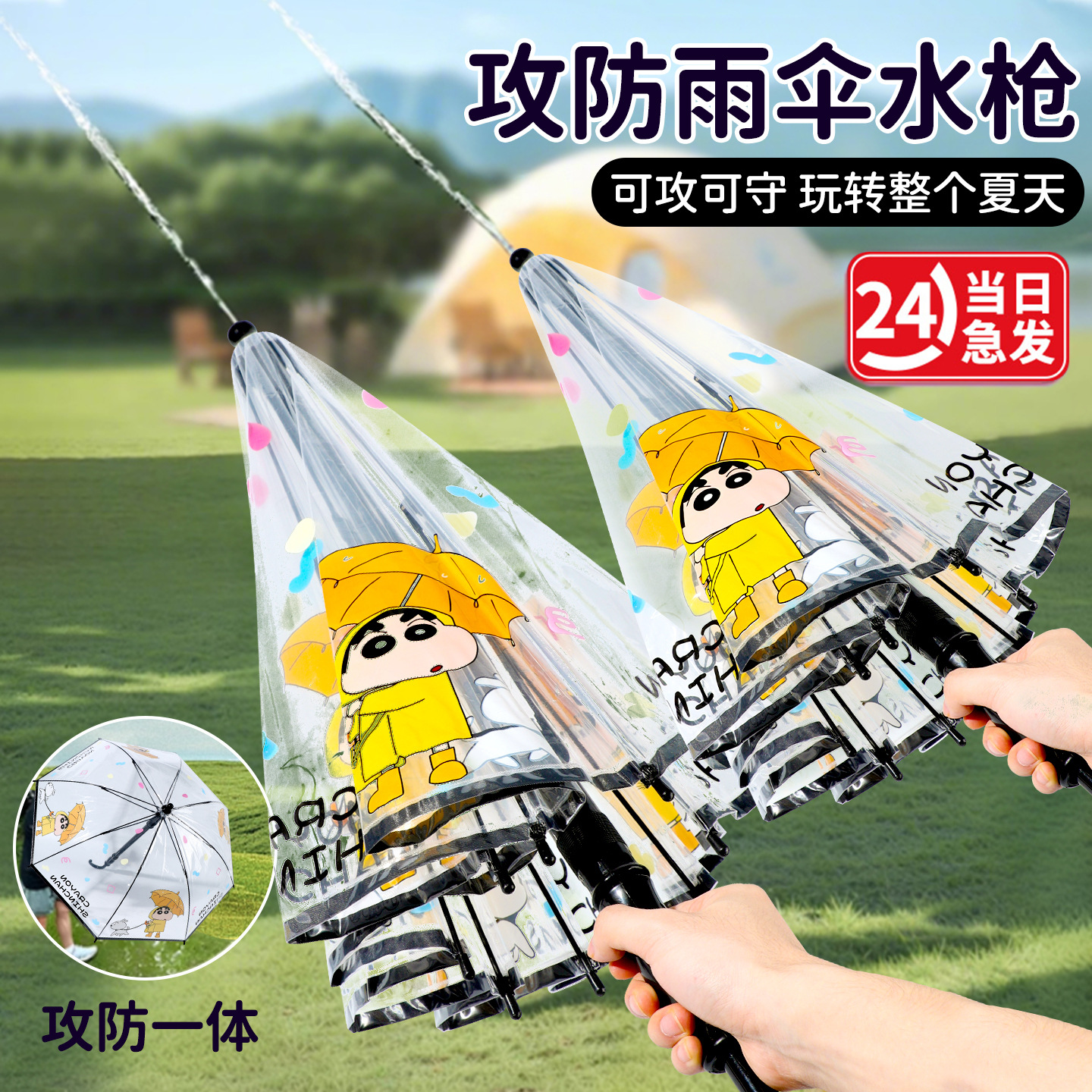 새로운 여름 창조적 인 투명 물총 우산 부모-자식 해변 표류 풀 아웃 물 스프레이 확대 긴 손잡이 우산 제조 업체