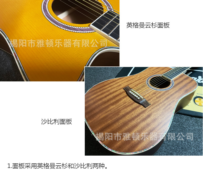 공장 직접 판매 현장 도매 Sapele Spruce 41inch 40inch Folk Acoustic Guitar 초보자 악기 기타스토어 가기
