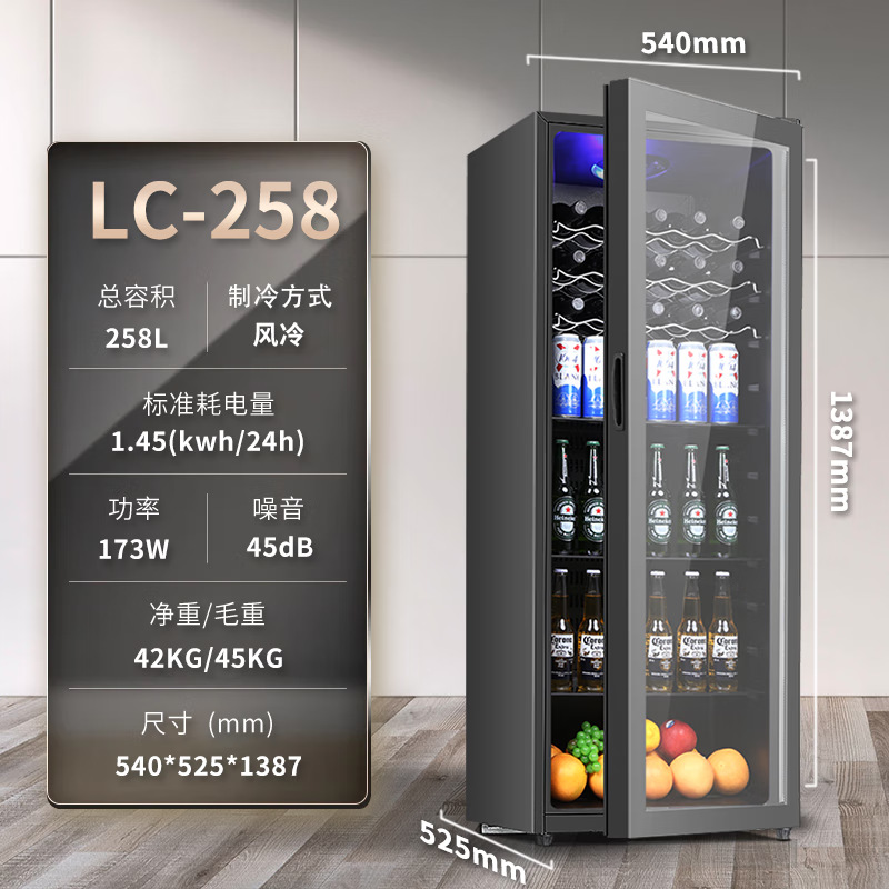 Chigo Ice Bar 가정용 소형 냉동고 냉장 및 신선 유지 상업용 사무실 차 음료 레드 와인 캐비닛 투명 냉장고