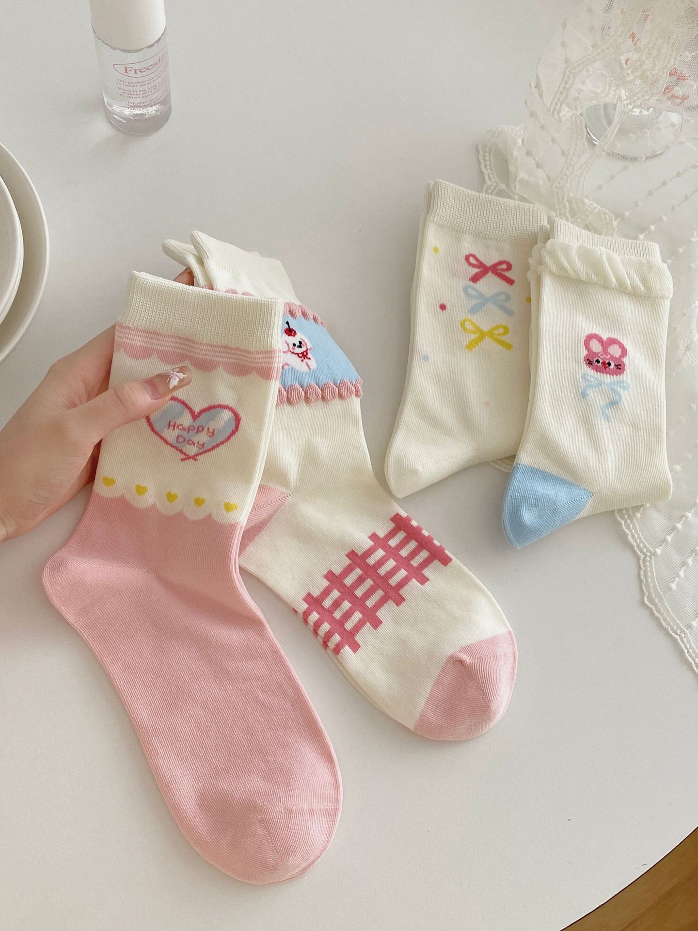 여성용 흰색 양말, 미끄럼 방지, 귀여운 만화 핑크 강아지 종아리 양말, 일본 여름 얇은 양말스토어 가기