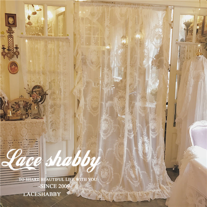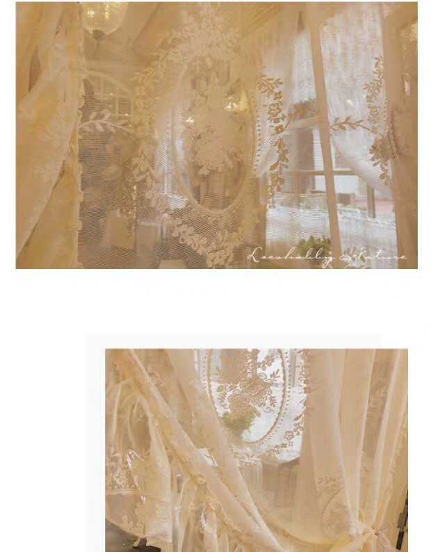 창 프랑스 침실 복고풍 거즈 커튼 로코코 공주 레이스 한국식 연잎 스타일 플로팅 창 커튼 발코니 완제품