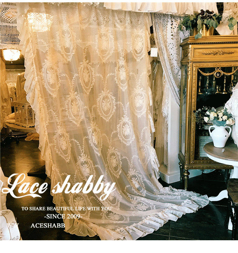 창 프랑스 침실 복고풍 거즈 커튼 로코코 공주 레이스 한국식 연잎 스타일 플로팅 창 커튼 발코니 완제품스토어 가기