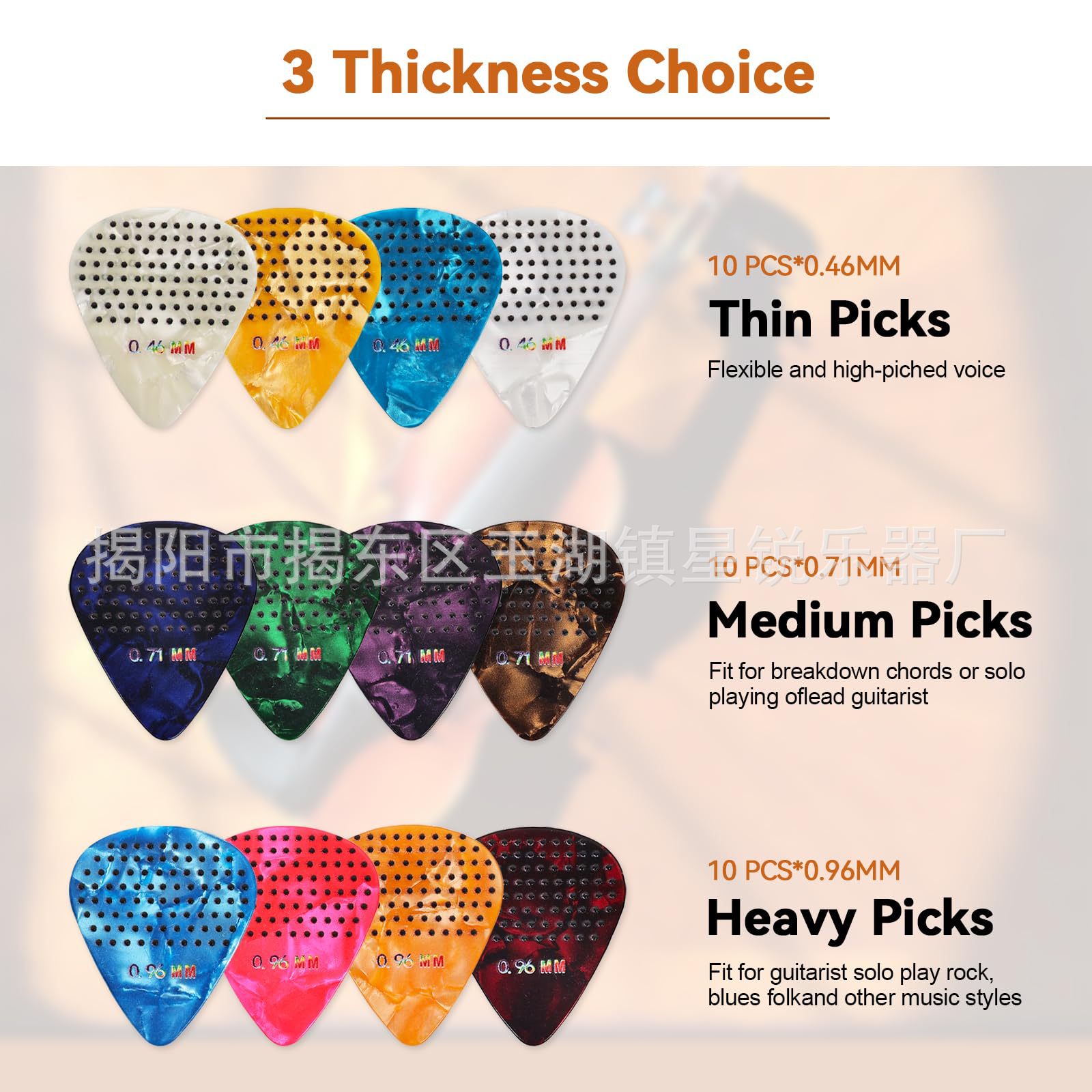 그립이 있는 기타 픽 미끄럼 방지 기타 픽 0.46 0.71 0.96mm