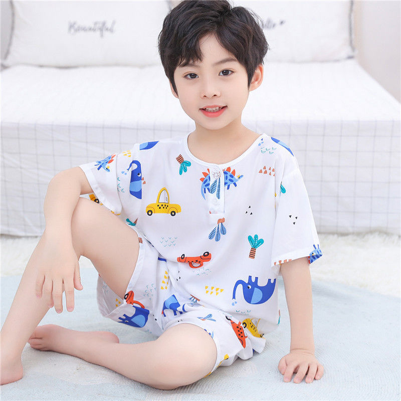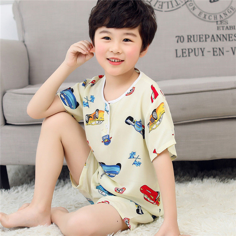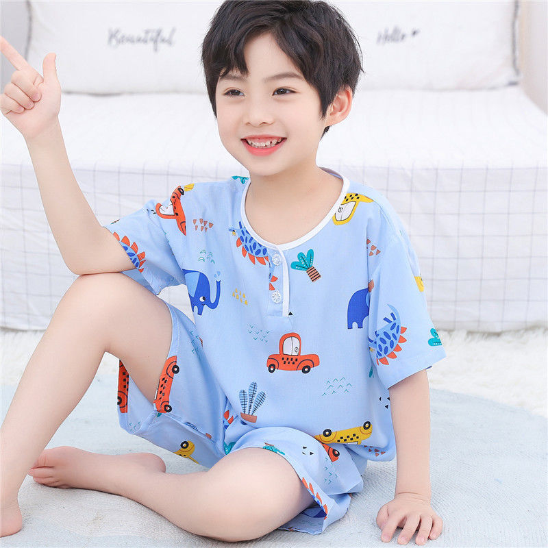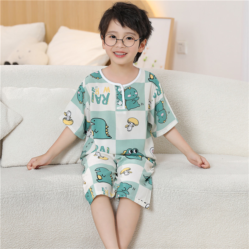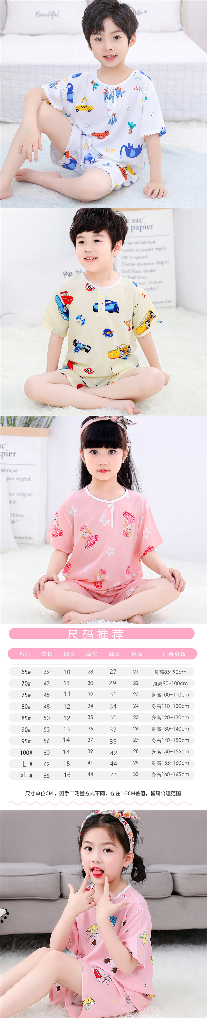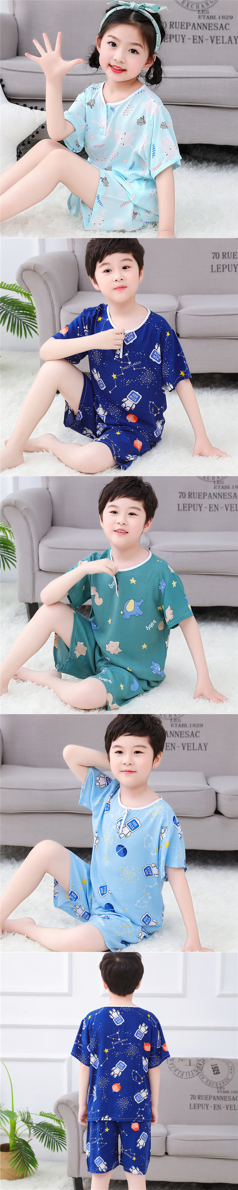 여름 어린이 면화 실크 잠옷 세트 반팔 반바지 면화 실크 소년과 소녀 아기 얇은 가정 옷스토어 가기